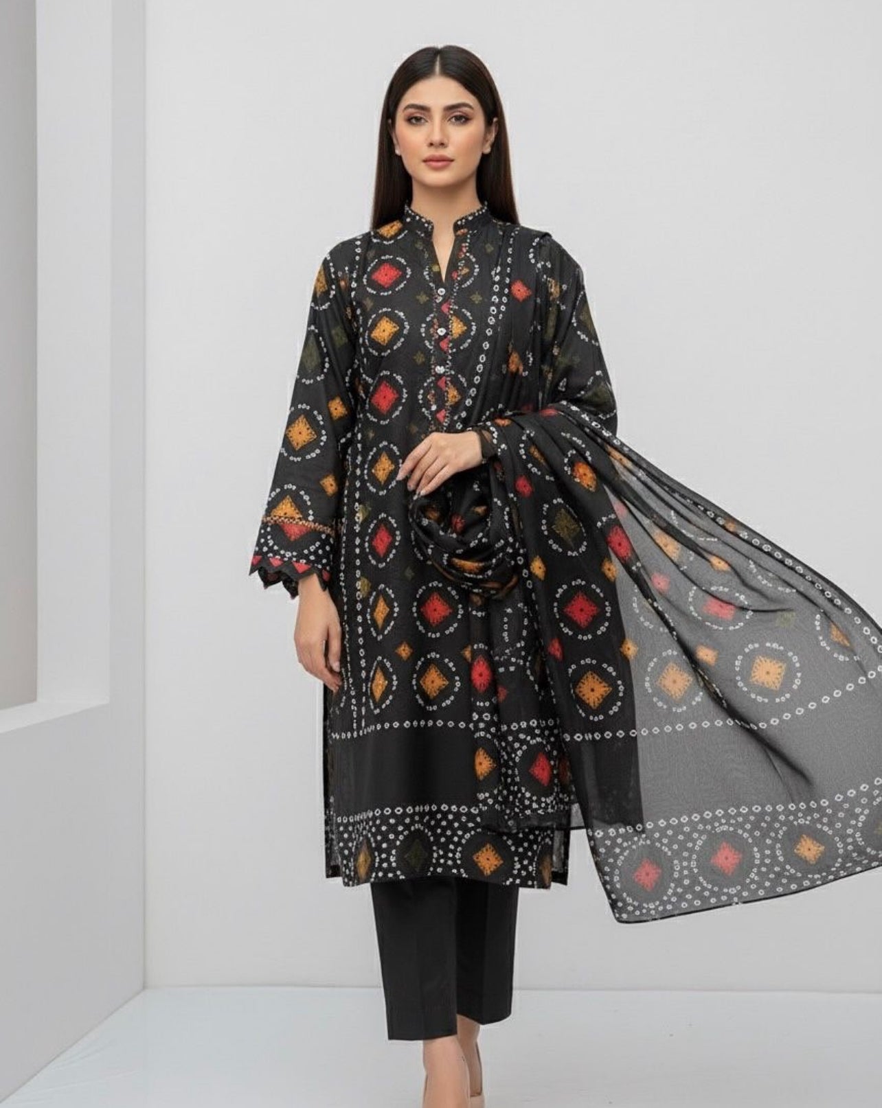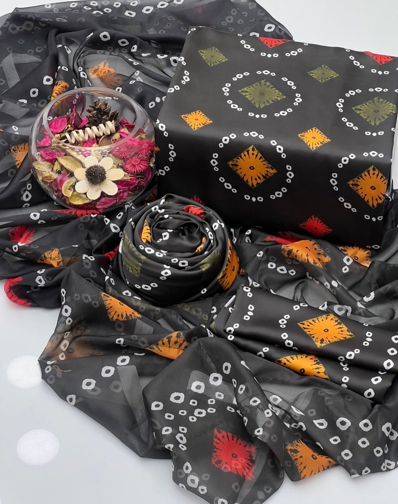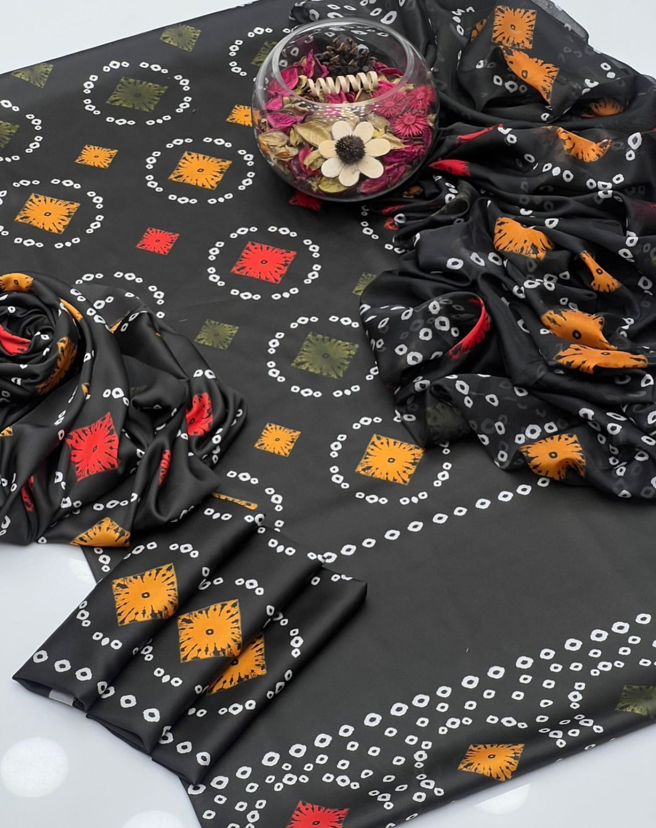 Shamoze Silk Digital Chunri Print Shirt With Digital Print & Chunri Shamoze Silk Trouser Along With Silk Digital Print Dupatta 3Pcs Dress 👗.Â