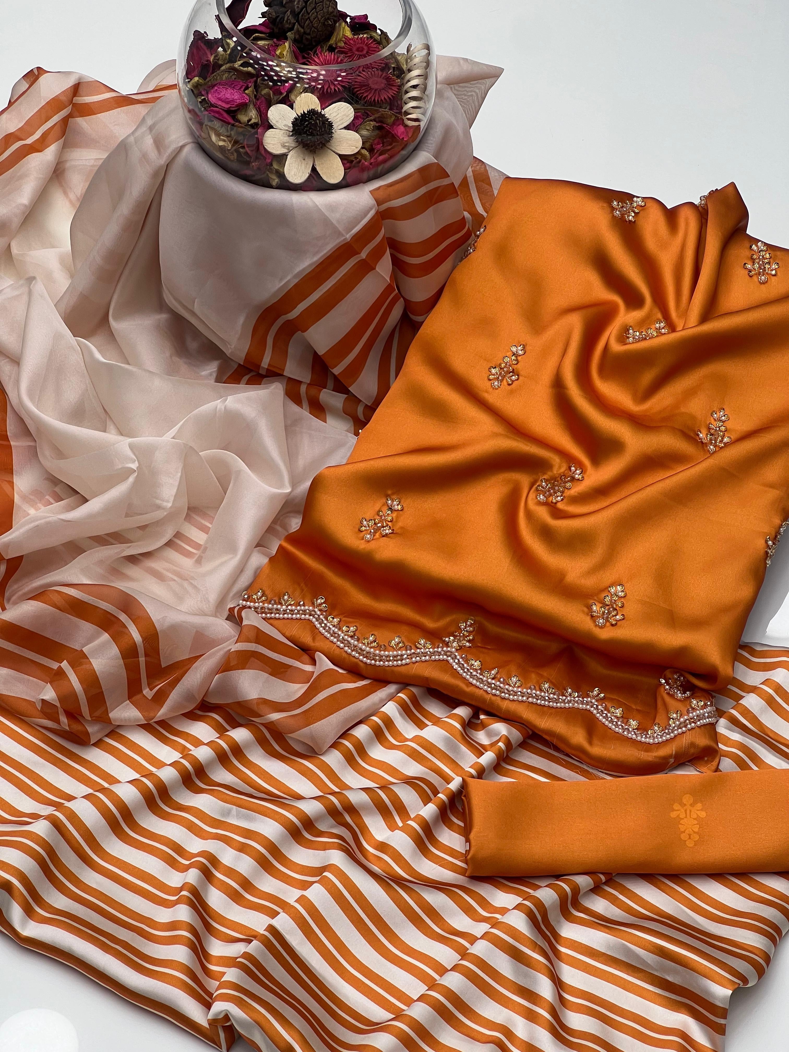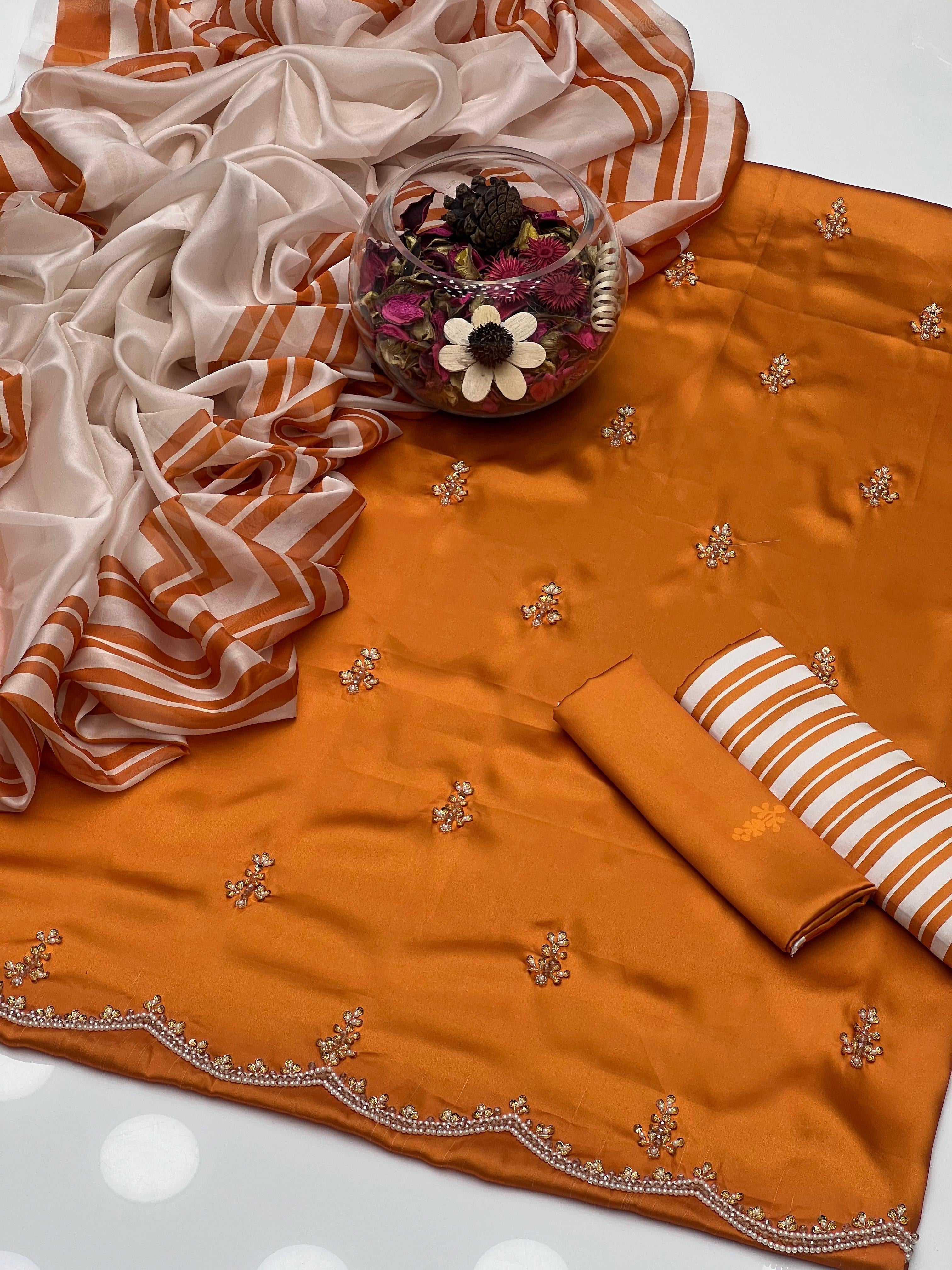 Shamoze Silk Fancy AllOver Fancy Beads Work With Digital Print Shirt, Digital Print Lining Shamoze Silk Trouser Along With Silk Digital Print Dupatta