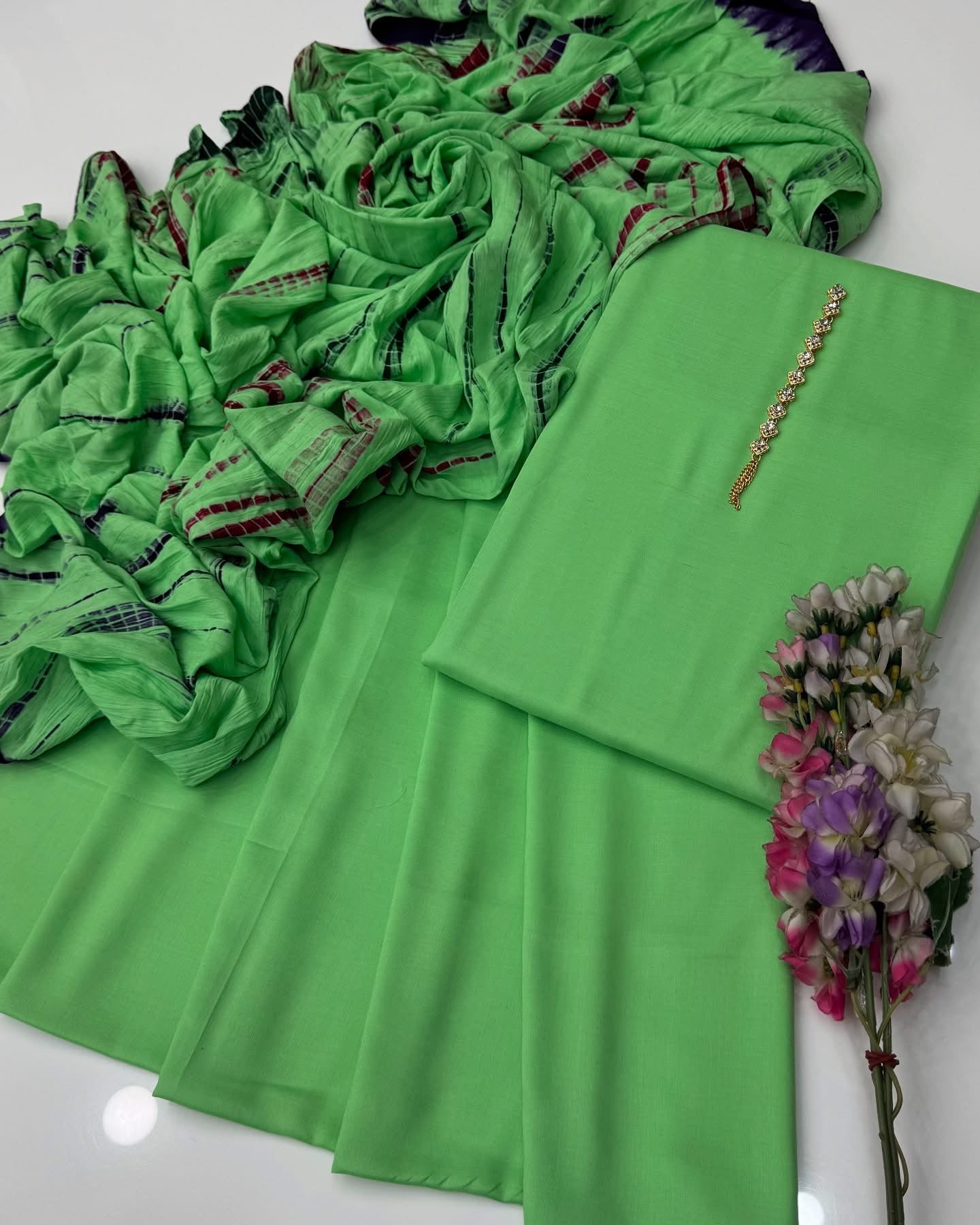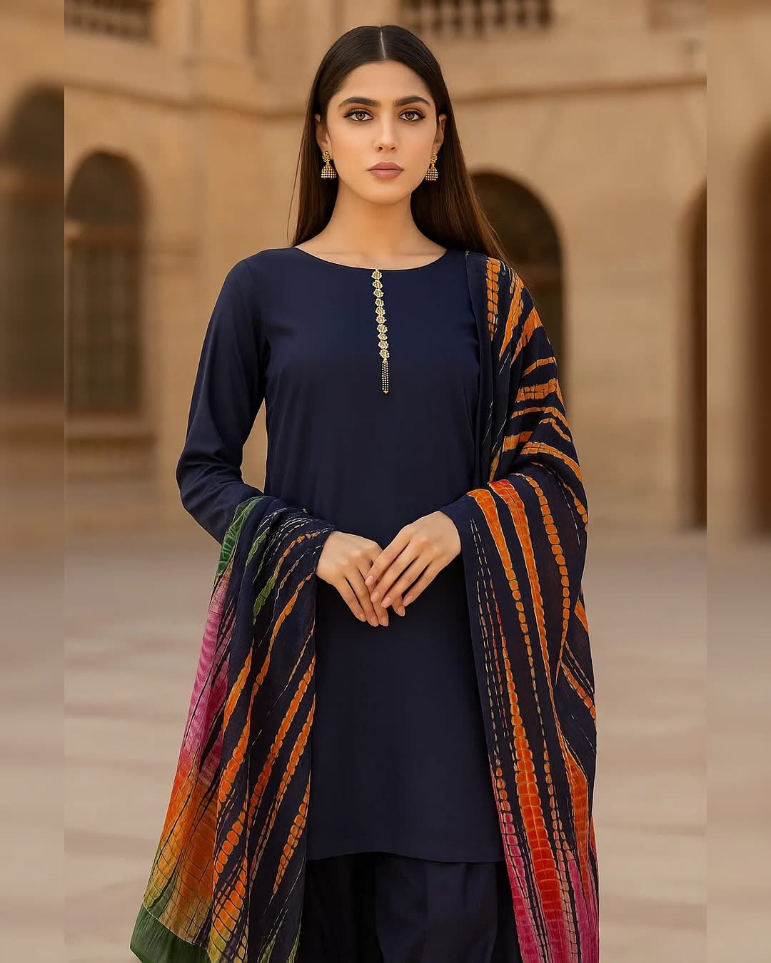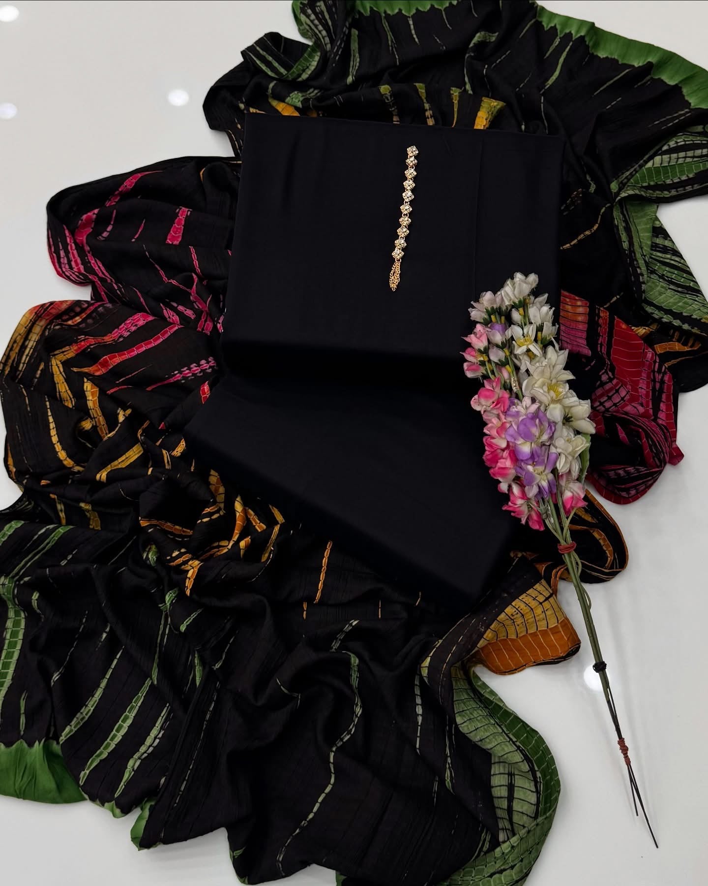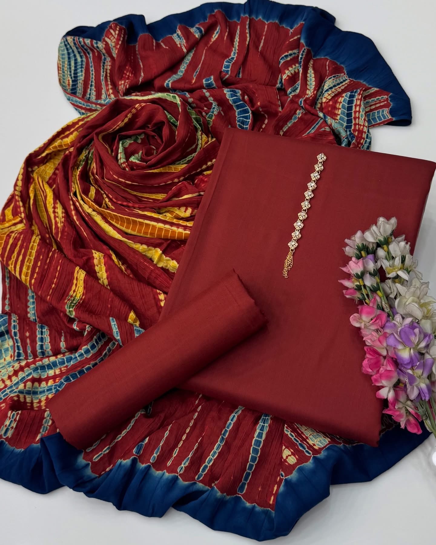 Beautiful Tradional Tye N Dye Linen Shawl With Soft Linen Shirt And Trouser (Included Button) 3 Pc Dress 👗Â
