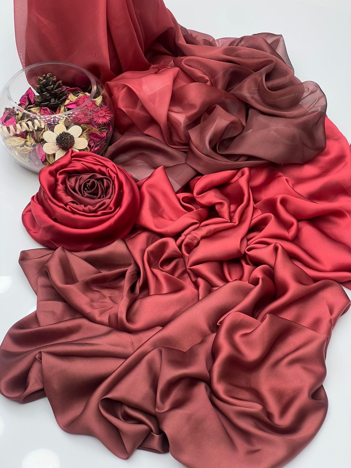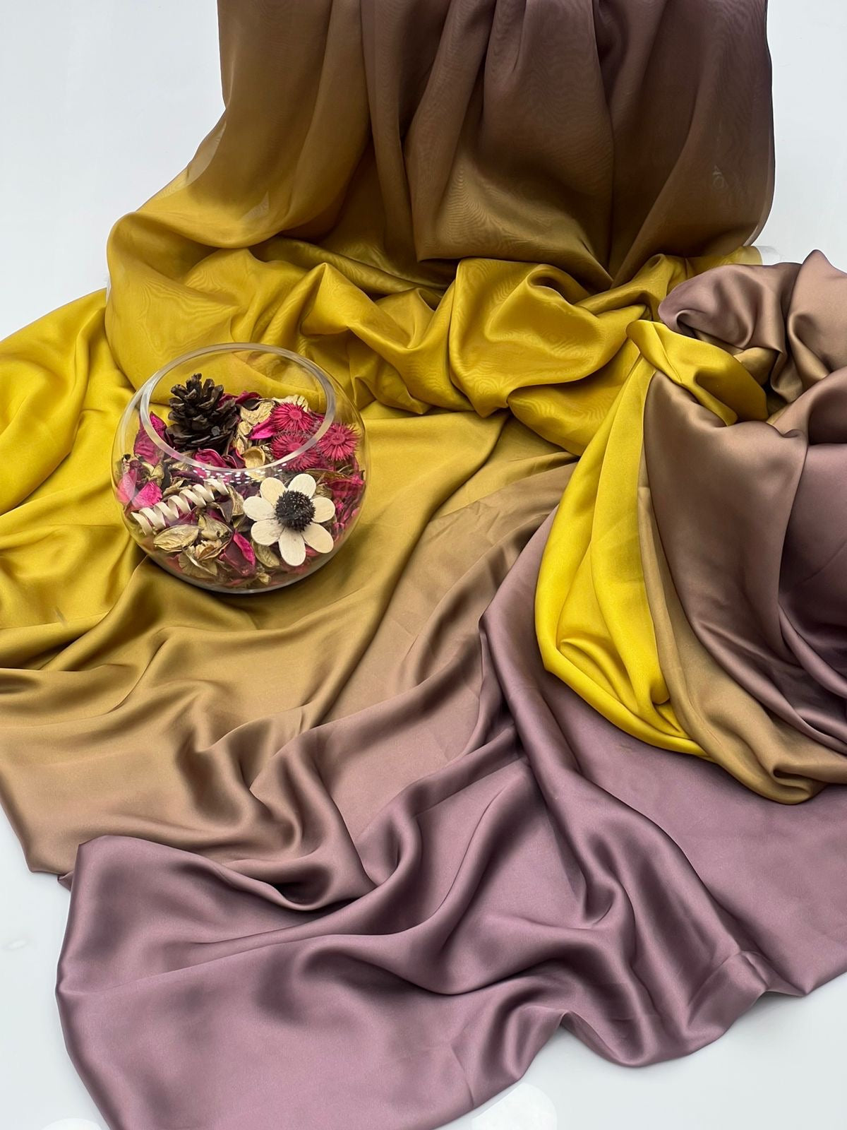 Beautiful Trending Tye N Dye Double Tone Digital Printed Premium Shamooz Silk Shirt & Trouser along Witj silk Dupata 3 Pc Dress 👗