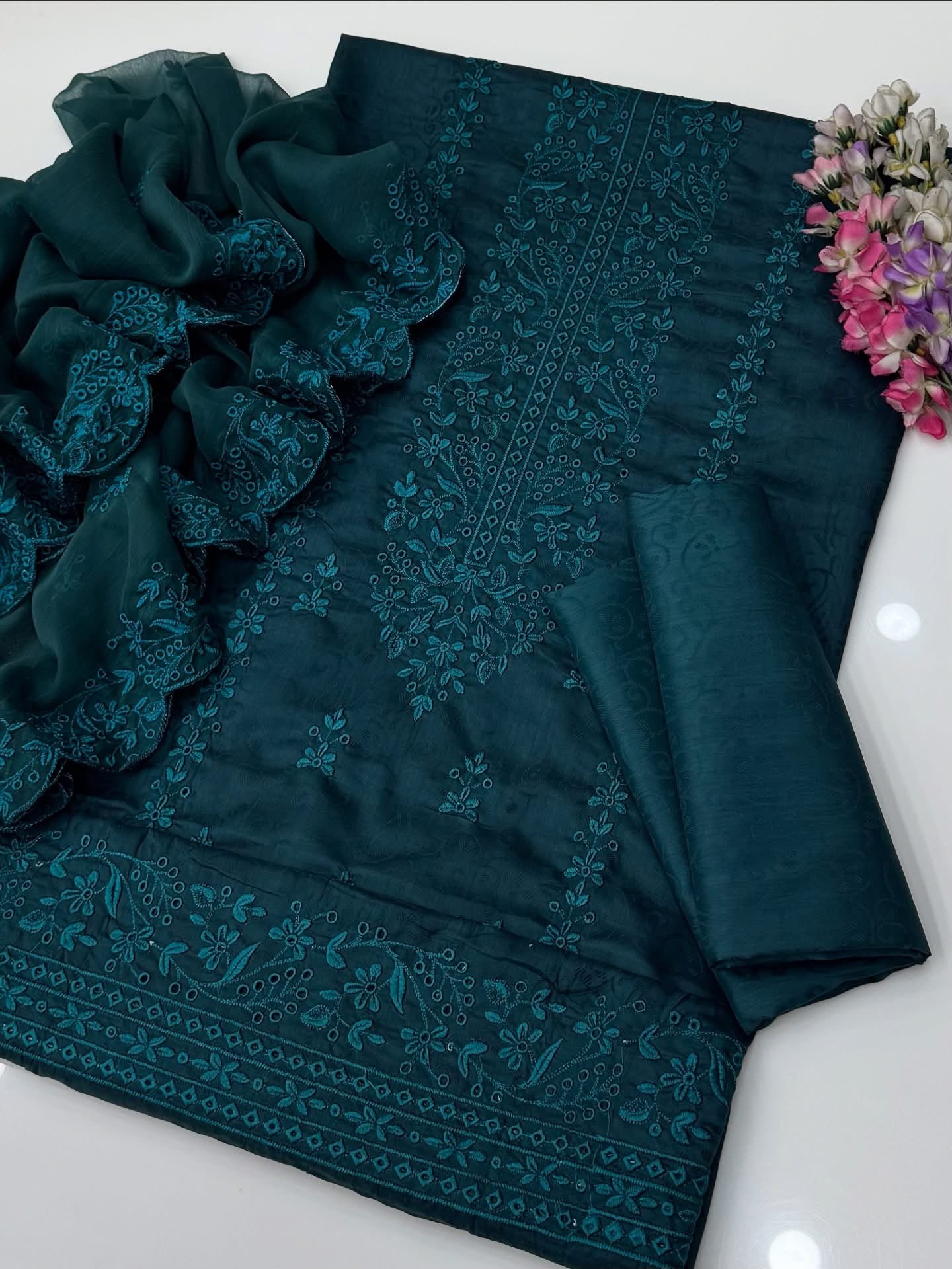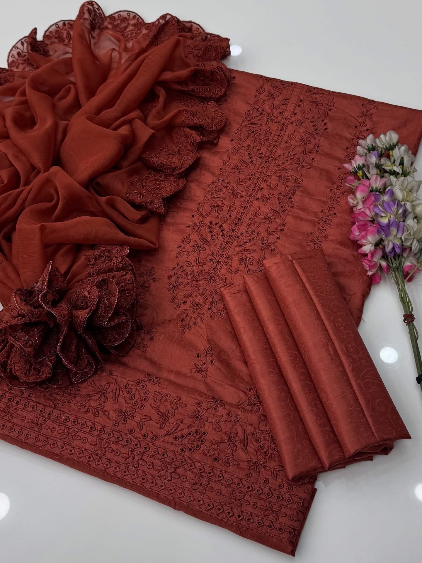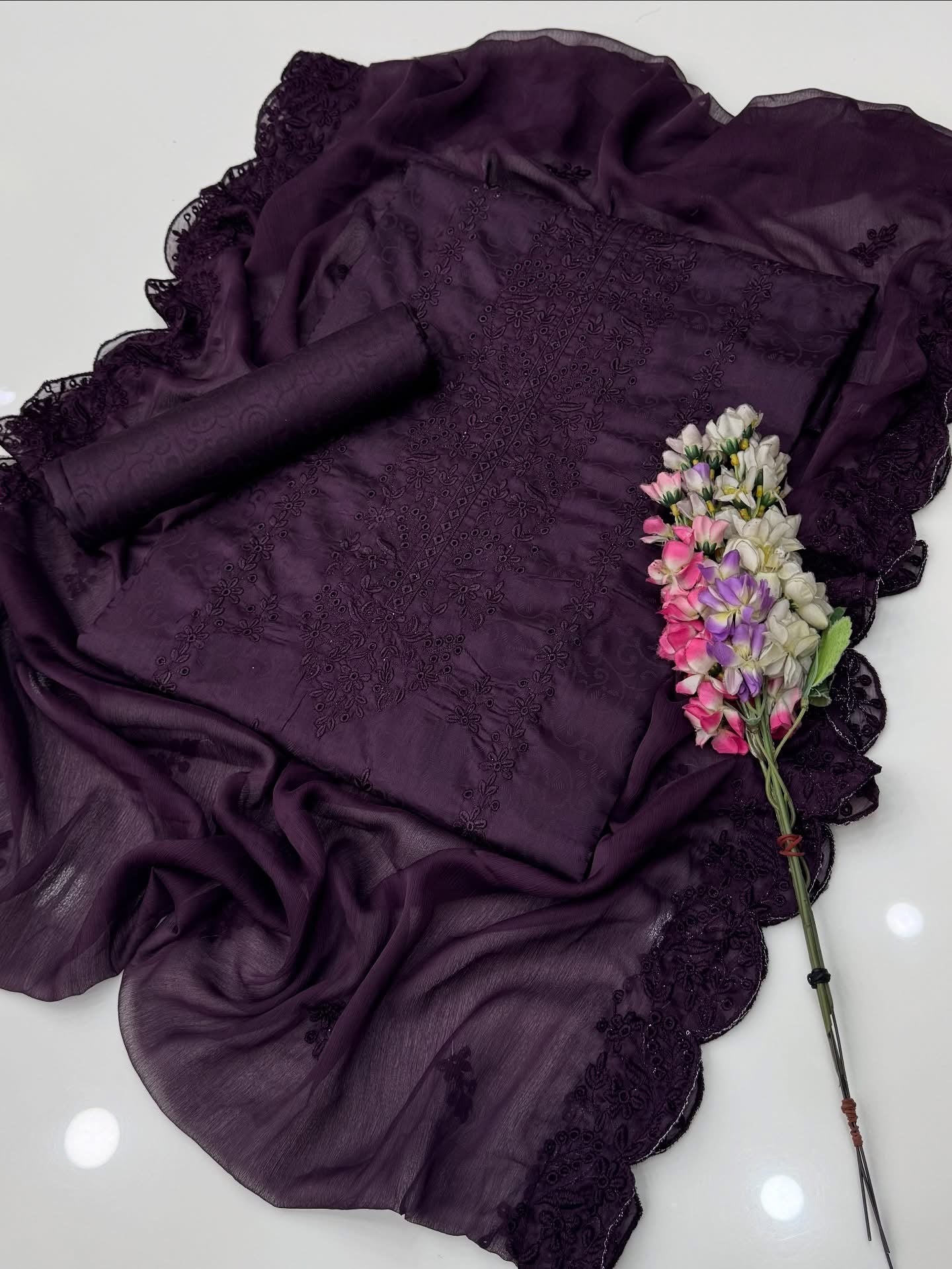 *work* chicken boring gala daman Embroidery Shirt and viscose embroidery Trouser With Chiffon embroidery boring dupatta