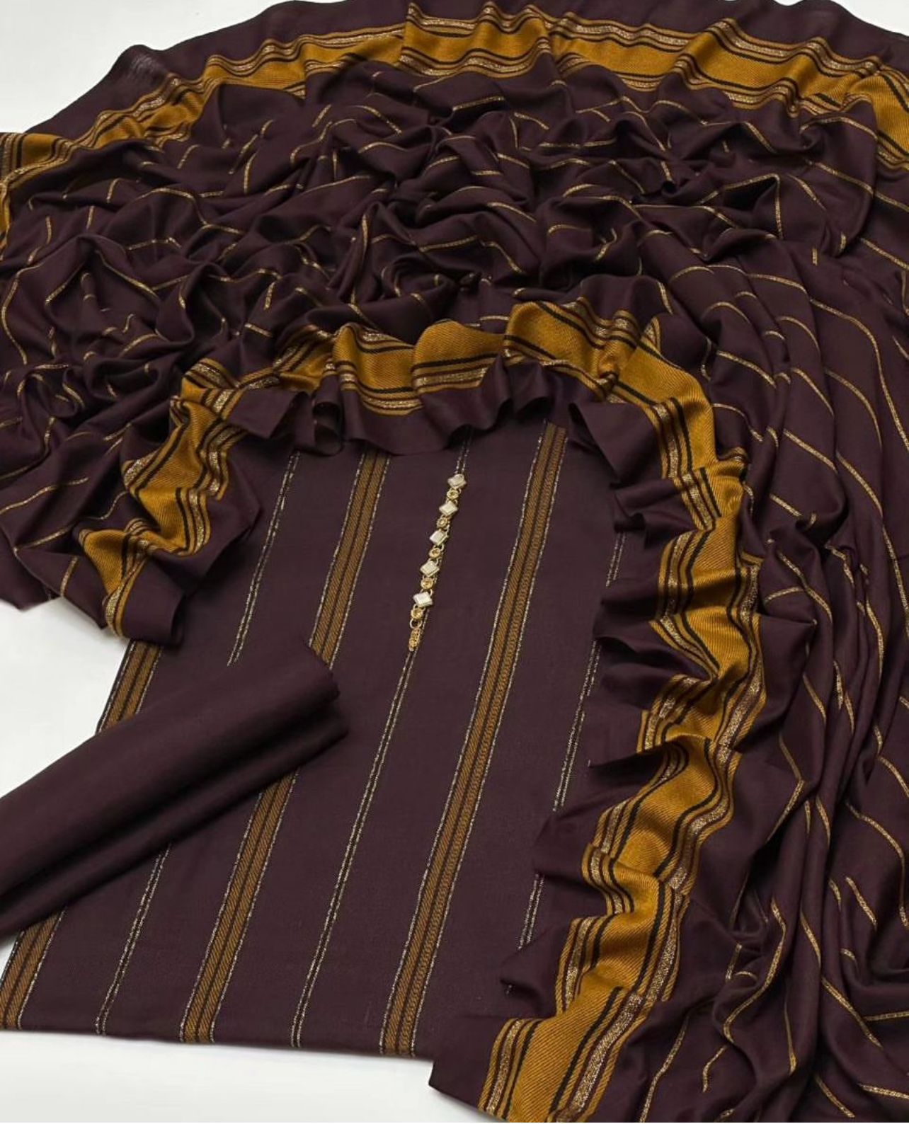Stuff Soft Wool Marina Plain Shirt, Self Trouser Along With Soft Wool Marina Shawl 3pcs Dress