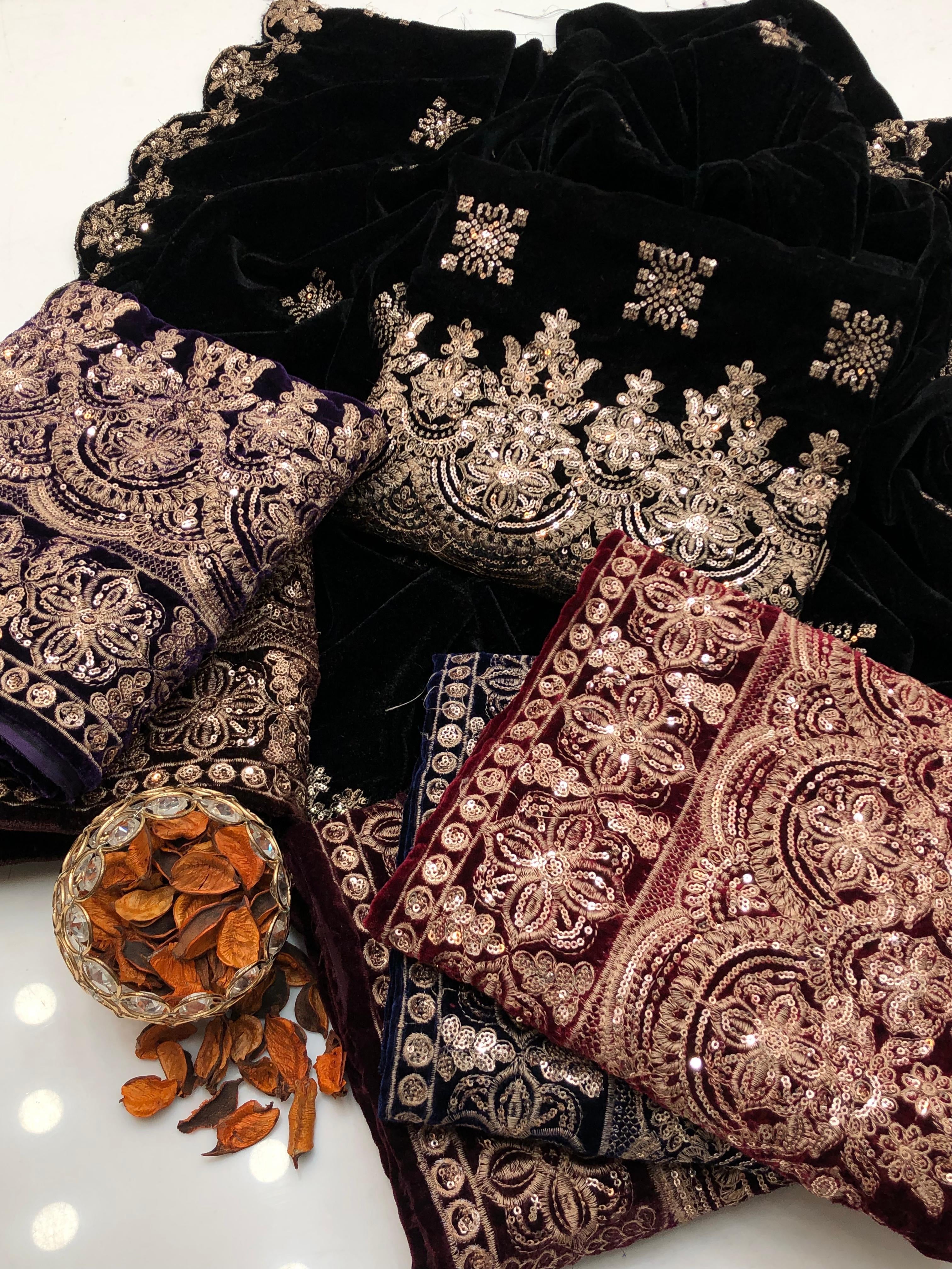 SHAWL VELVET EMBROIDERED BORDER