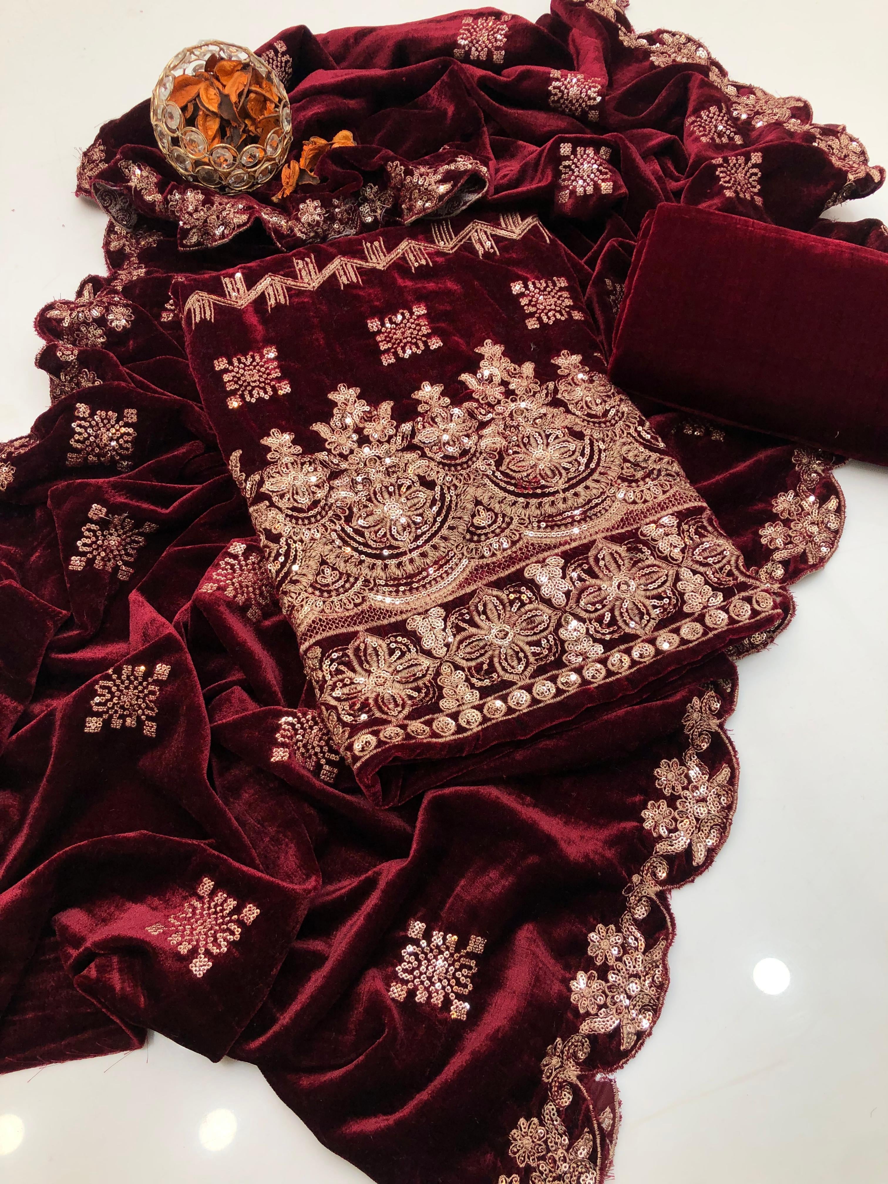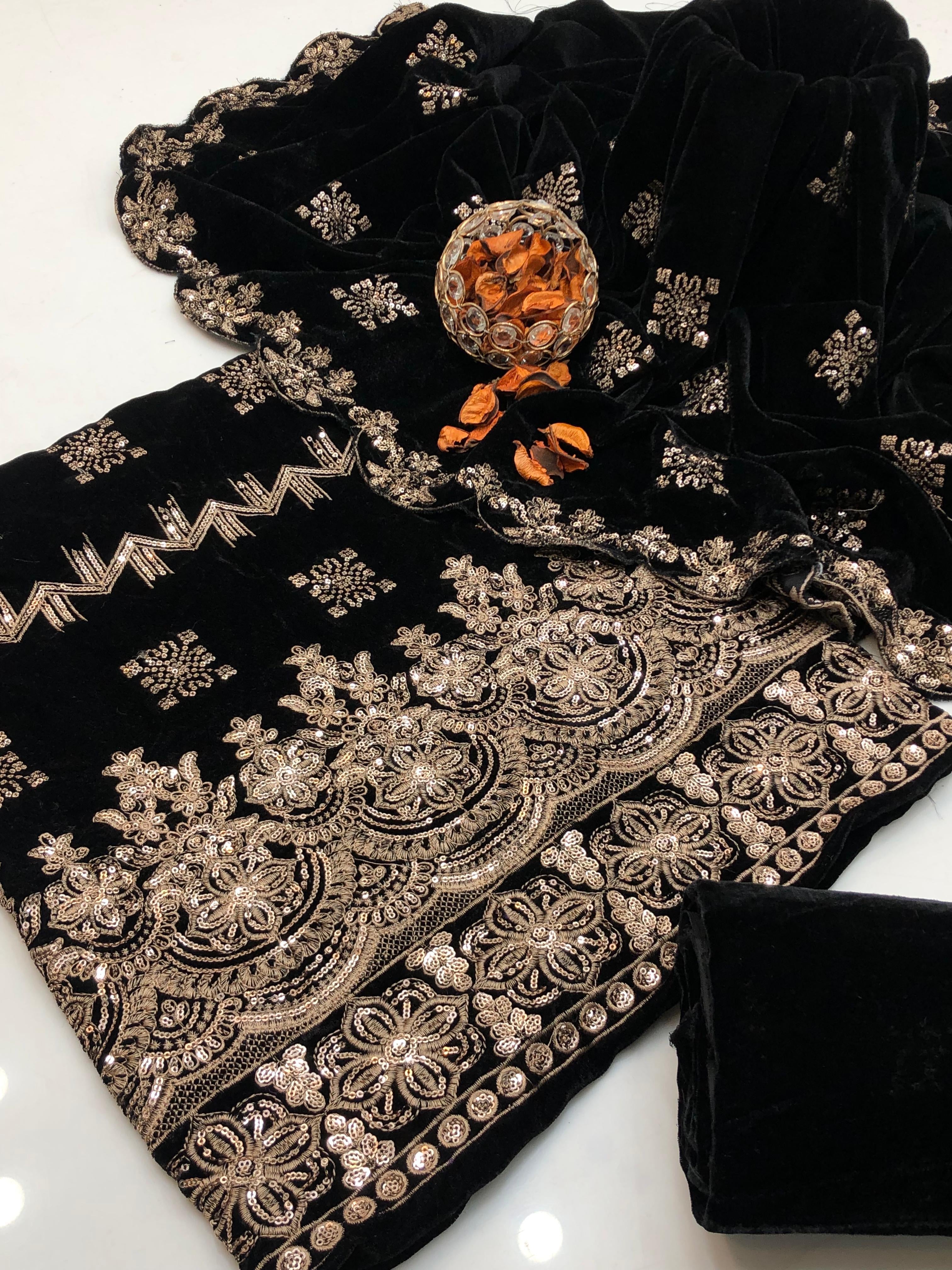 Shirt Velvet HEAVY EMBROIDERED WITH DAMAN WORK with *back boti embroidered*