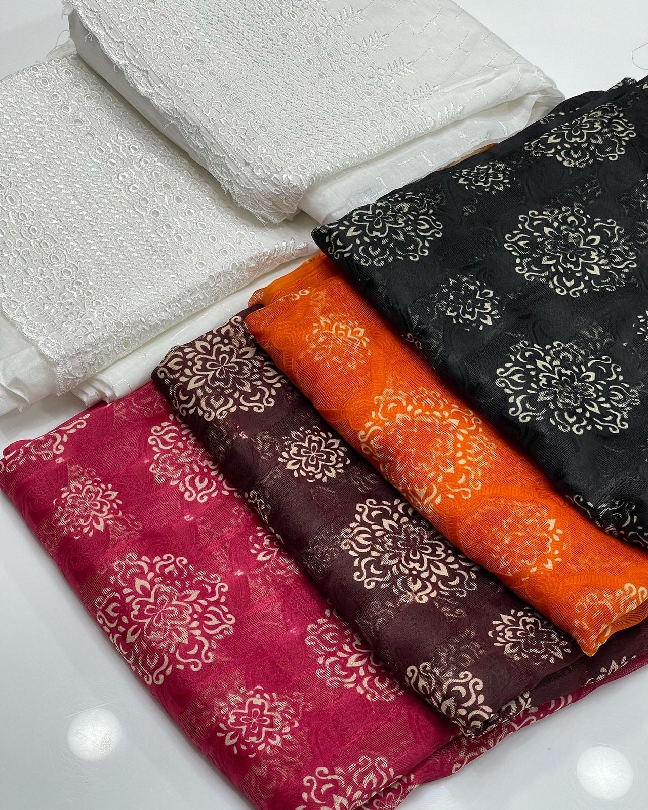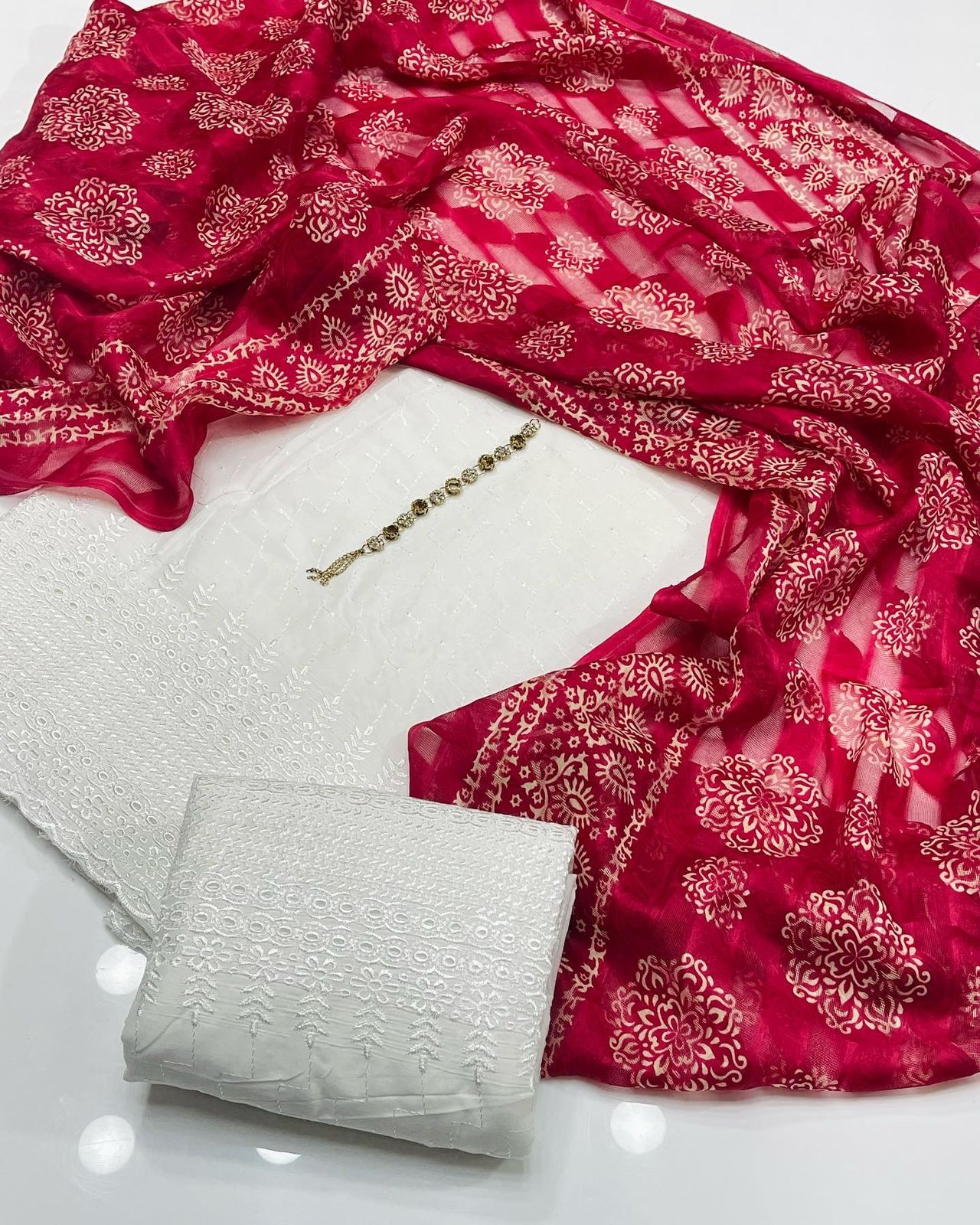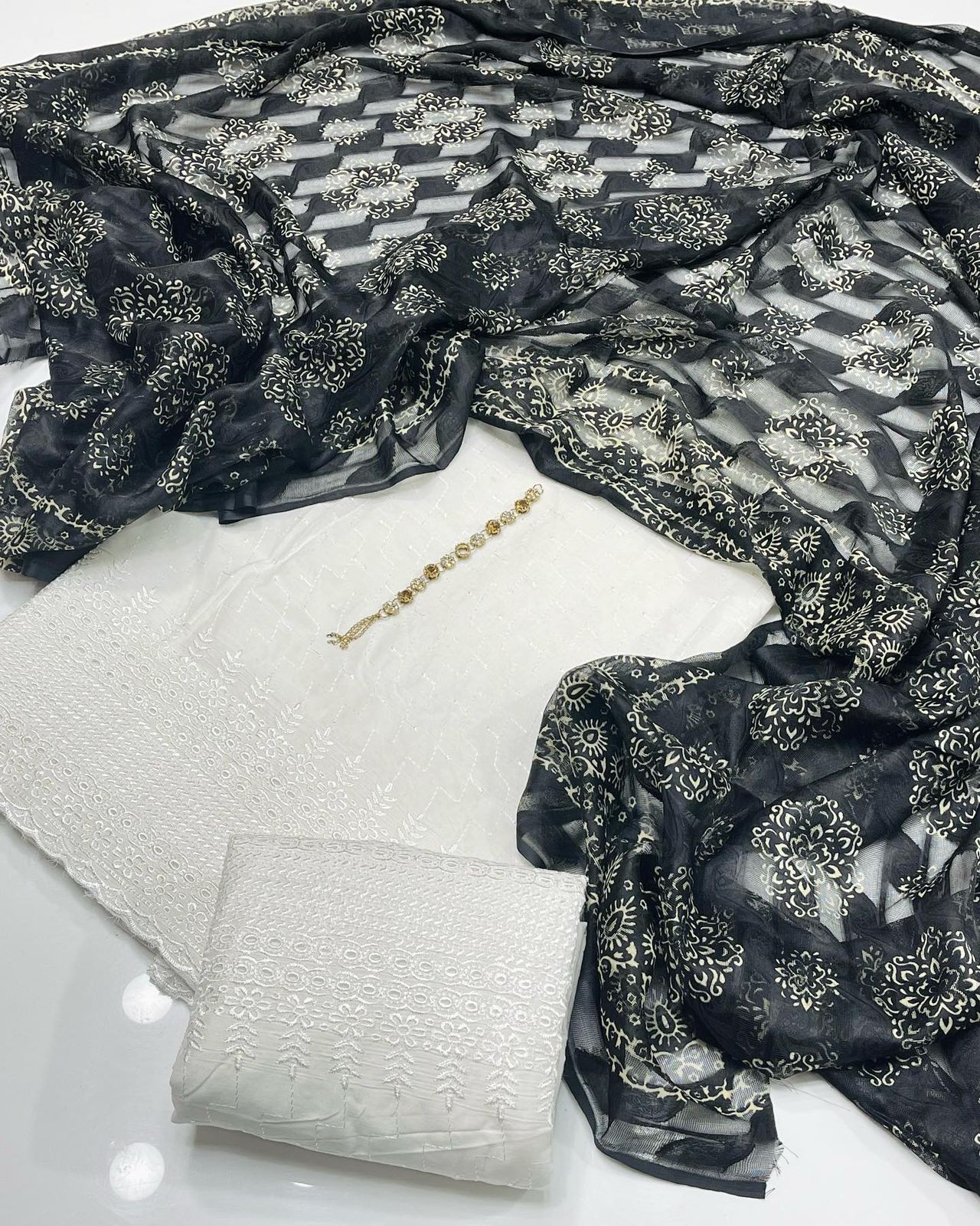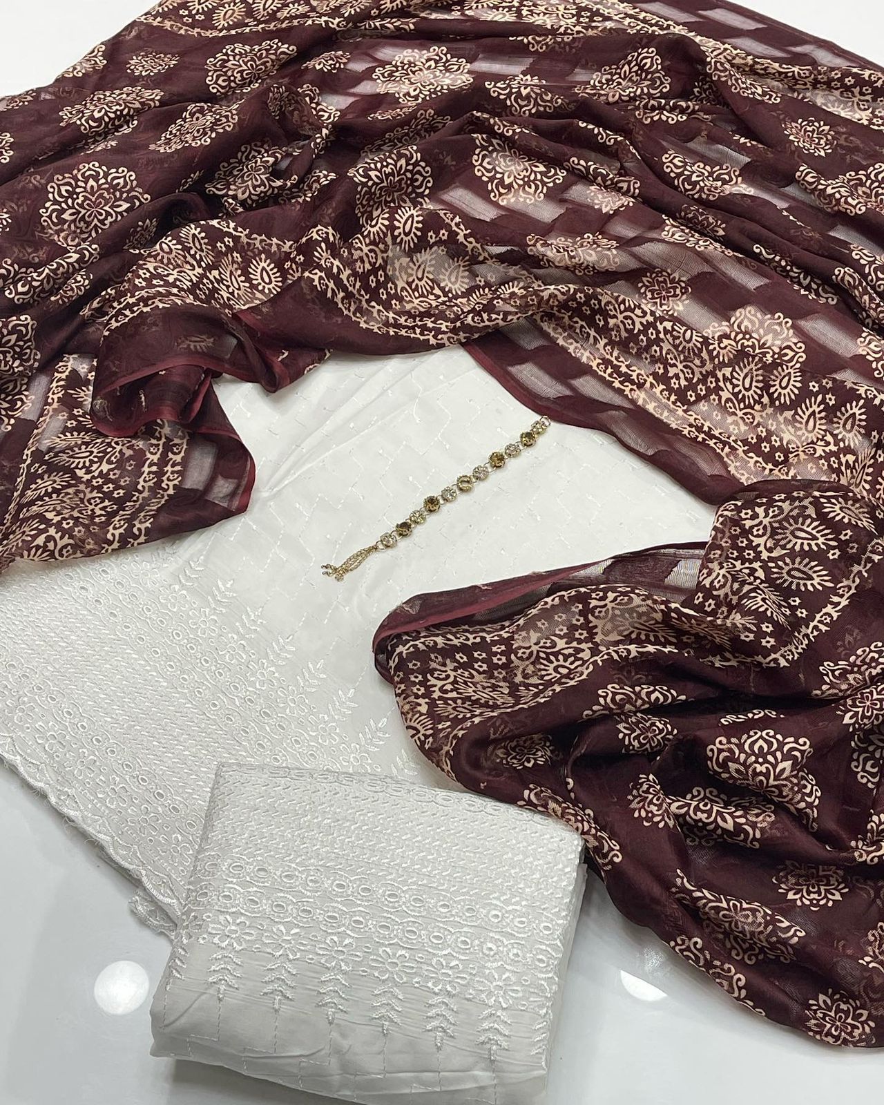Lawn Fabric Chicken embroidery shirt and trouser with