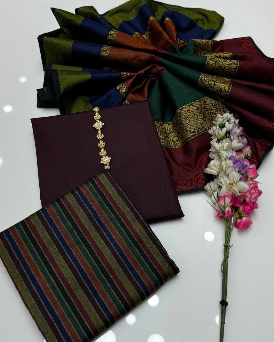 Stuff Khaddi susi Plain Shirt,, Muilty Self Trouser Along With Jacquard Shawl, 3pcs Dress