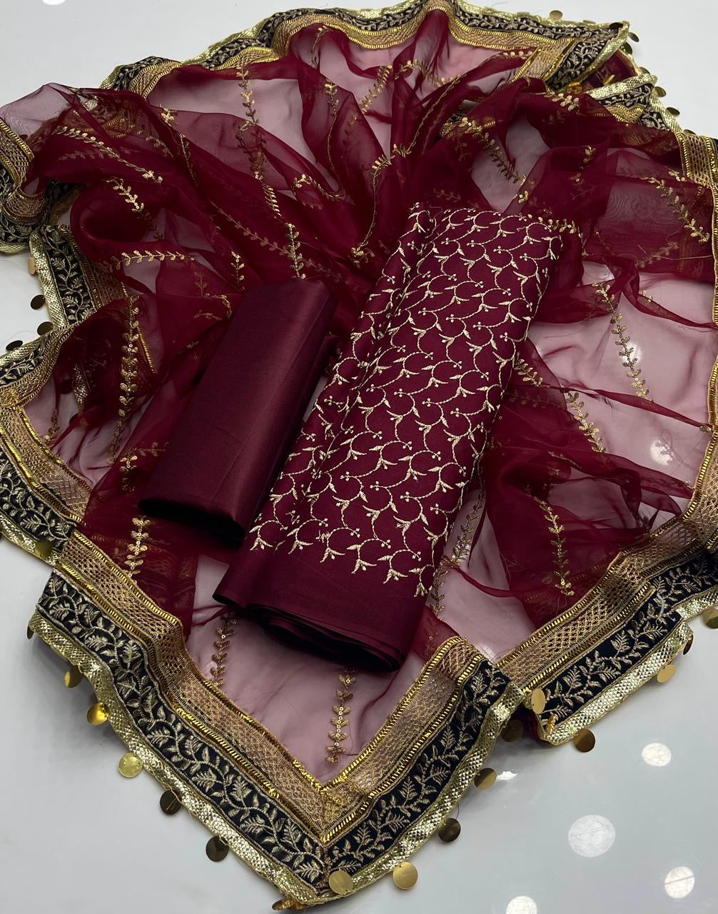 Organza Embroidered Heavy lase Dupatta