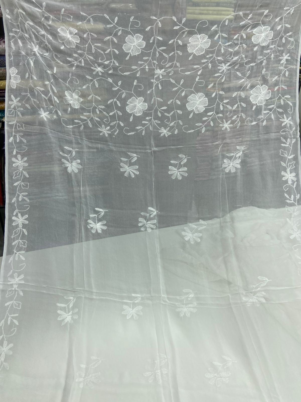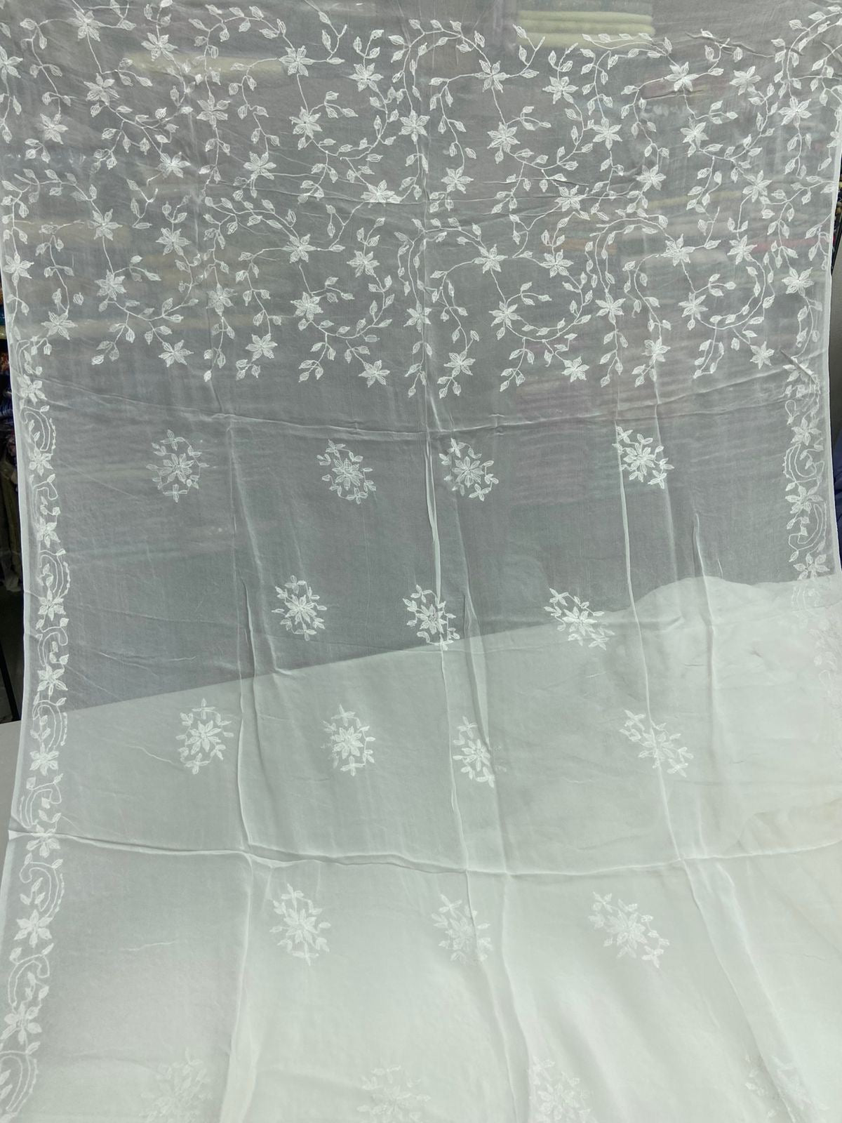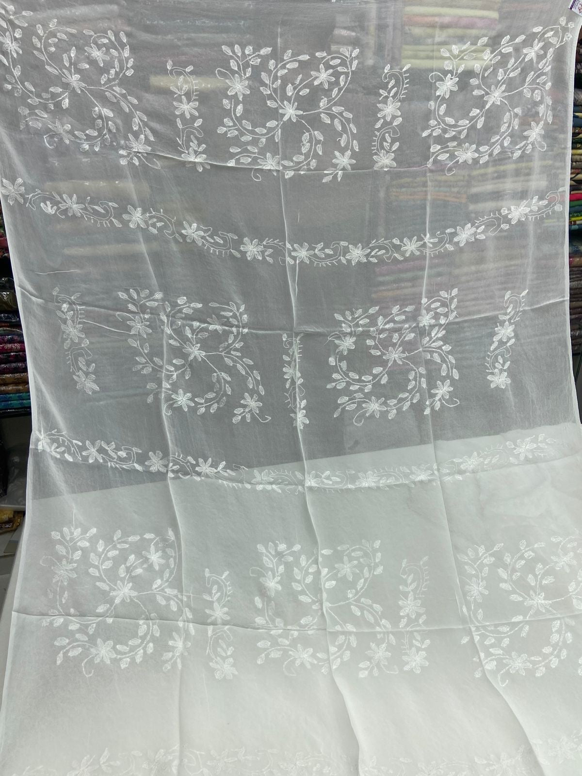 Chiffon Hand Work Kacha Embroidery Boader With Boti Jall Style Jst Dupatta.