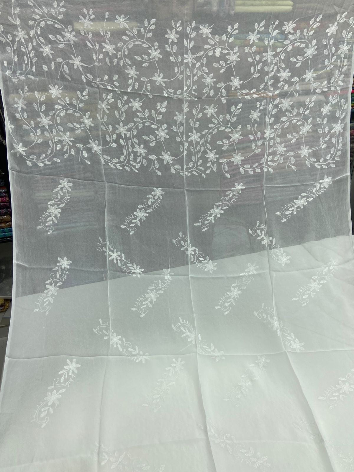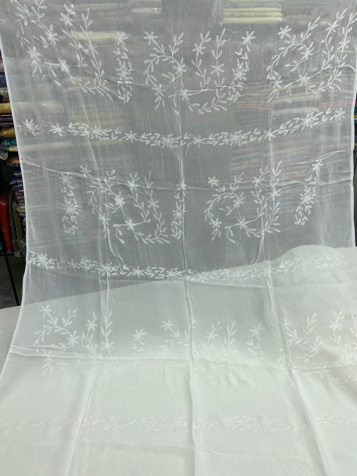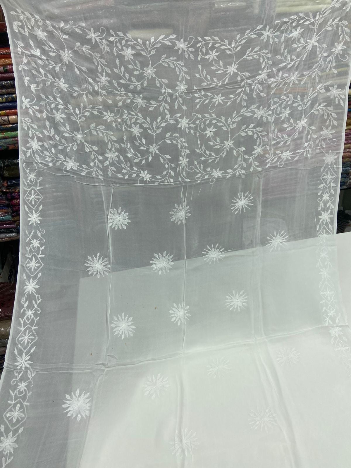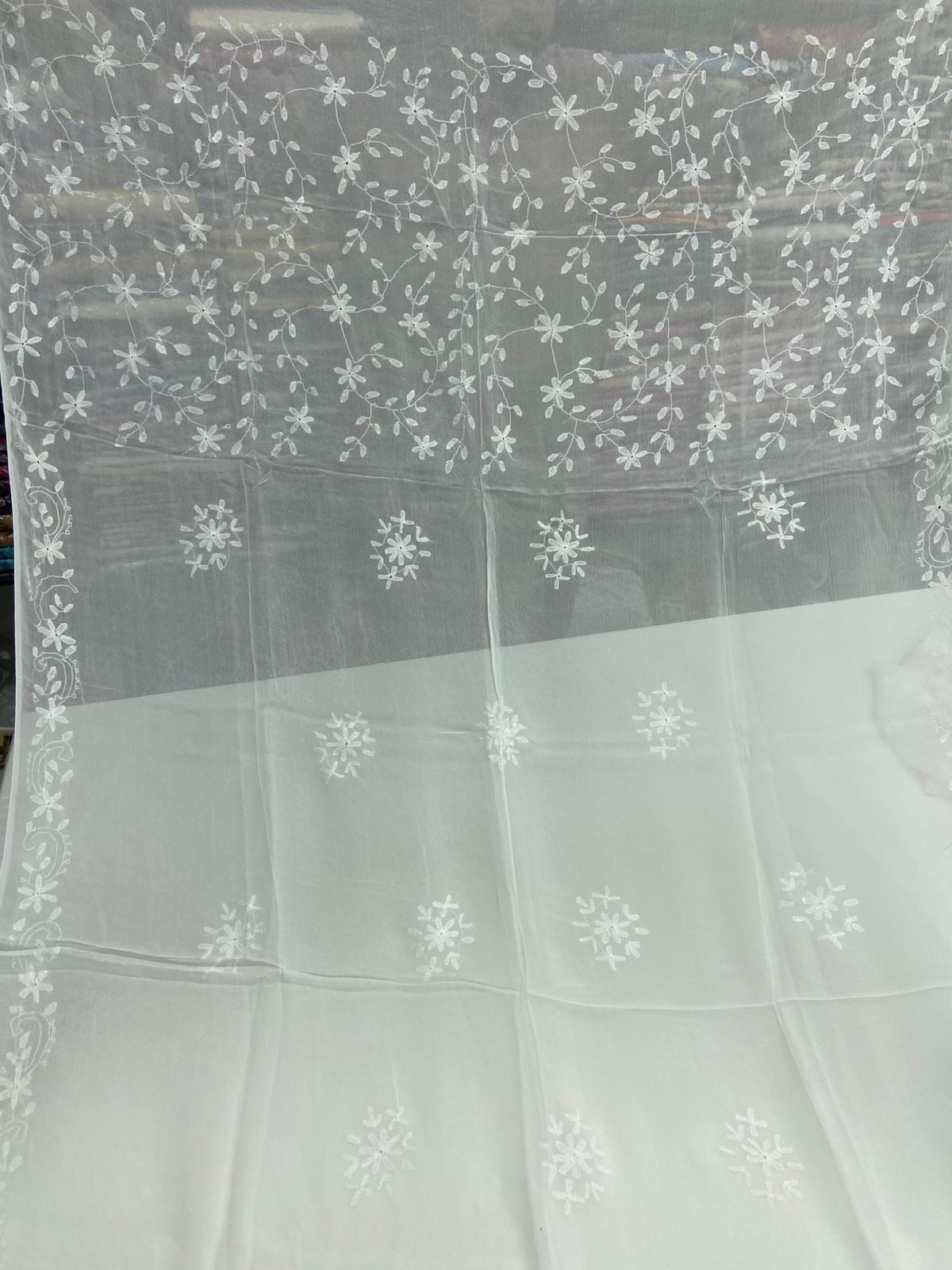 Chiffon Hand Work Kacha Embroidery Boader With Boti Jall Style Jst Dupatta.