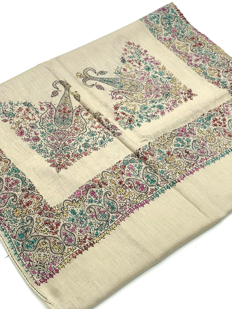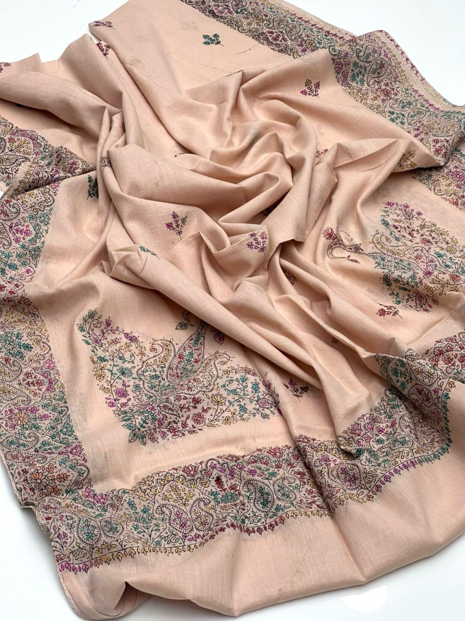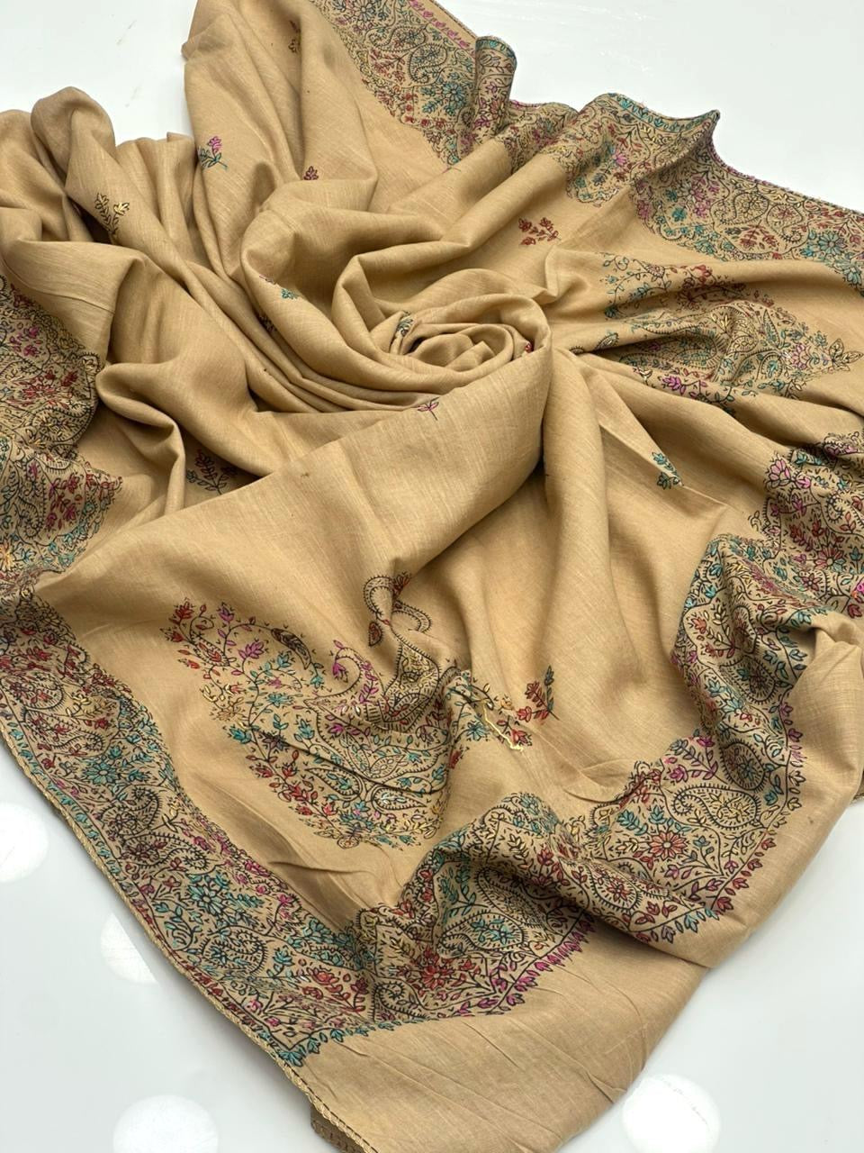 Lawn Fabric Shawl Hand Made Kashmiri Embriodery With Block Print Shawls Excellent Quality Lawn handmade Embroidery