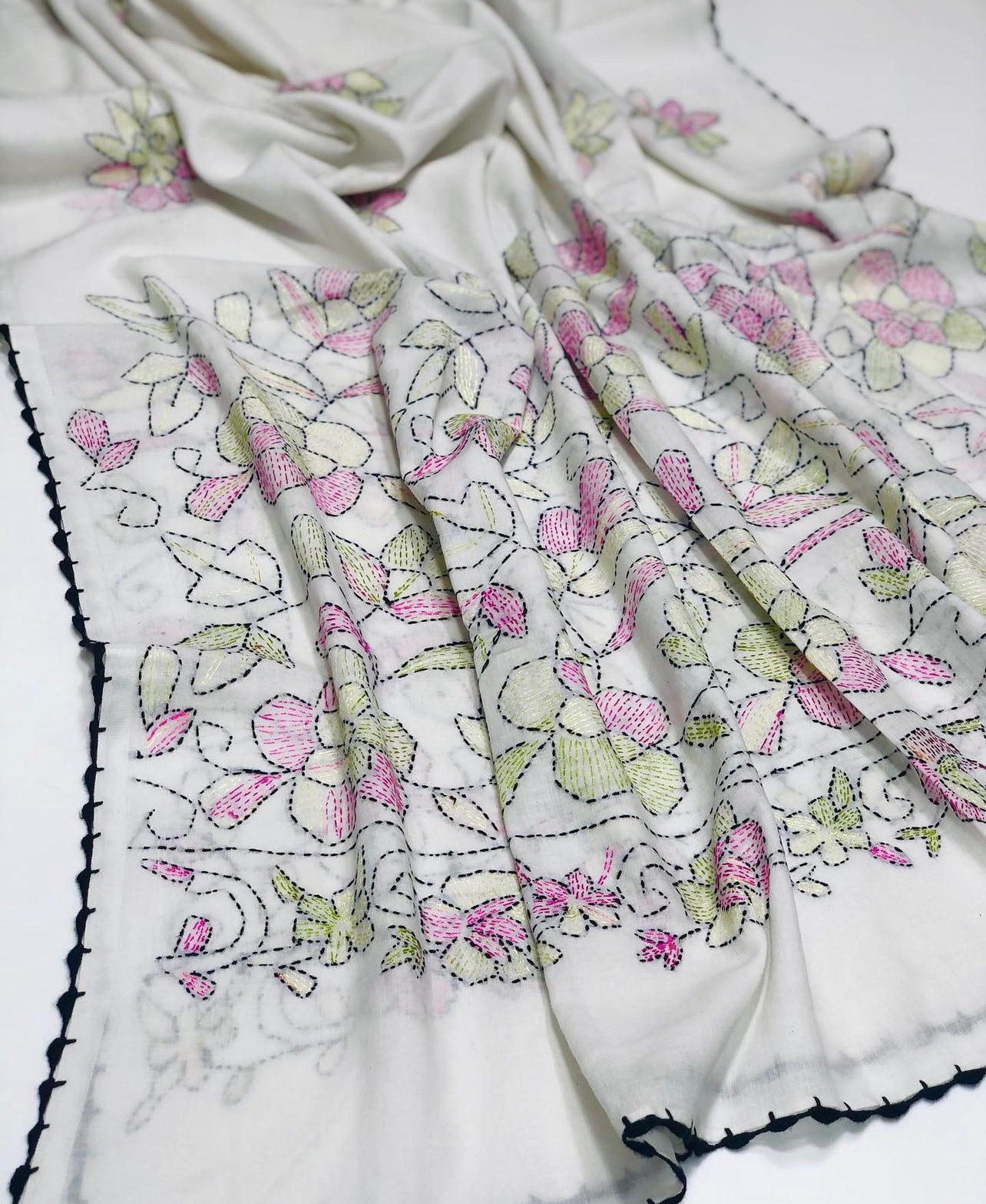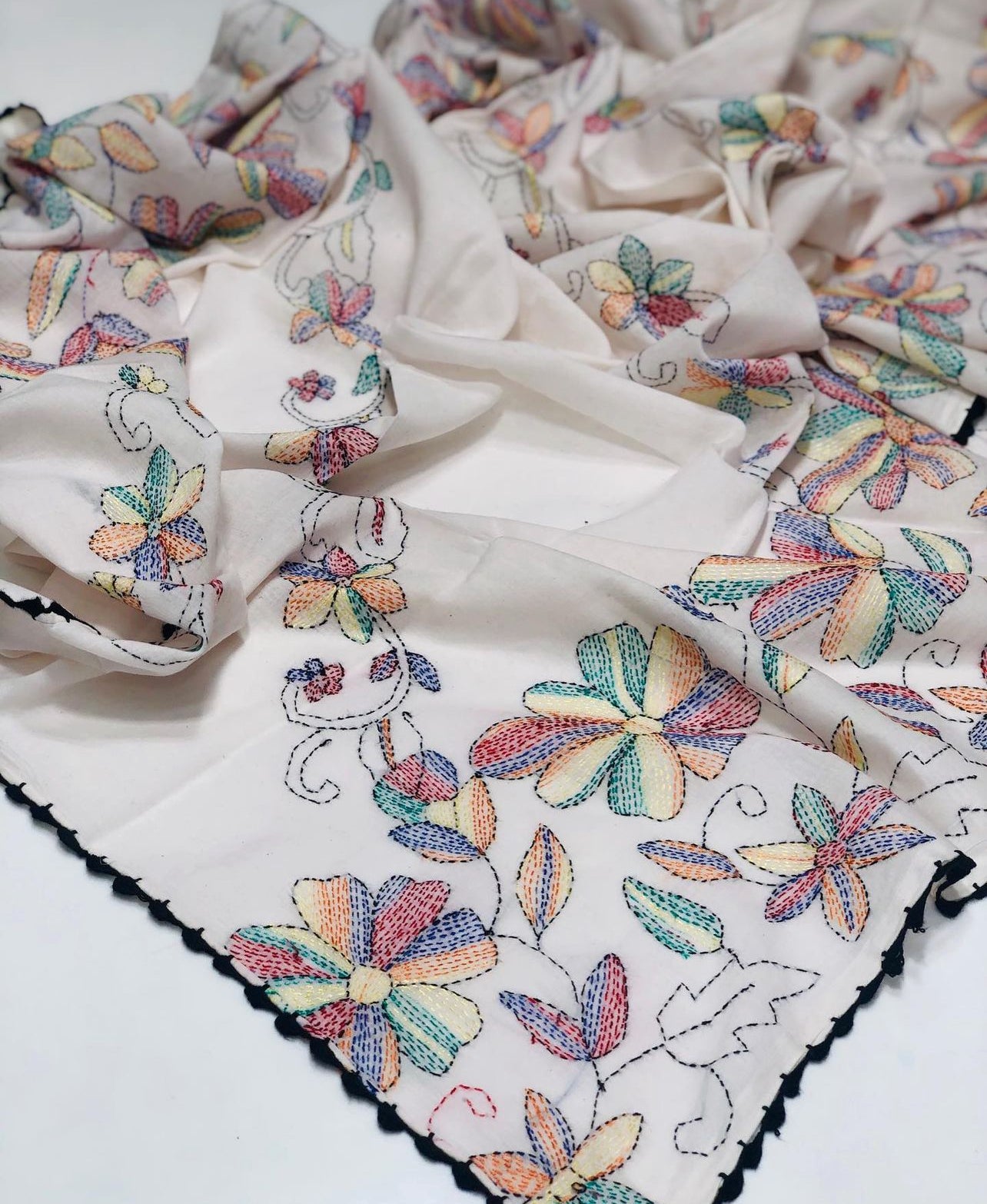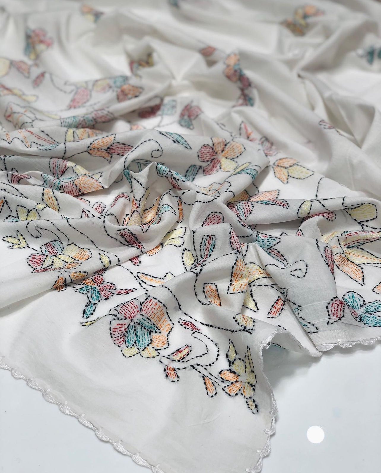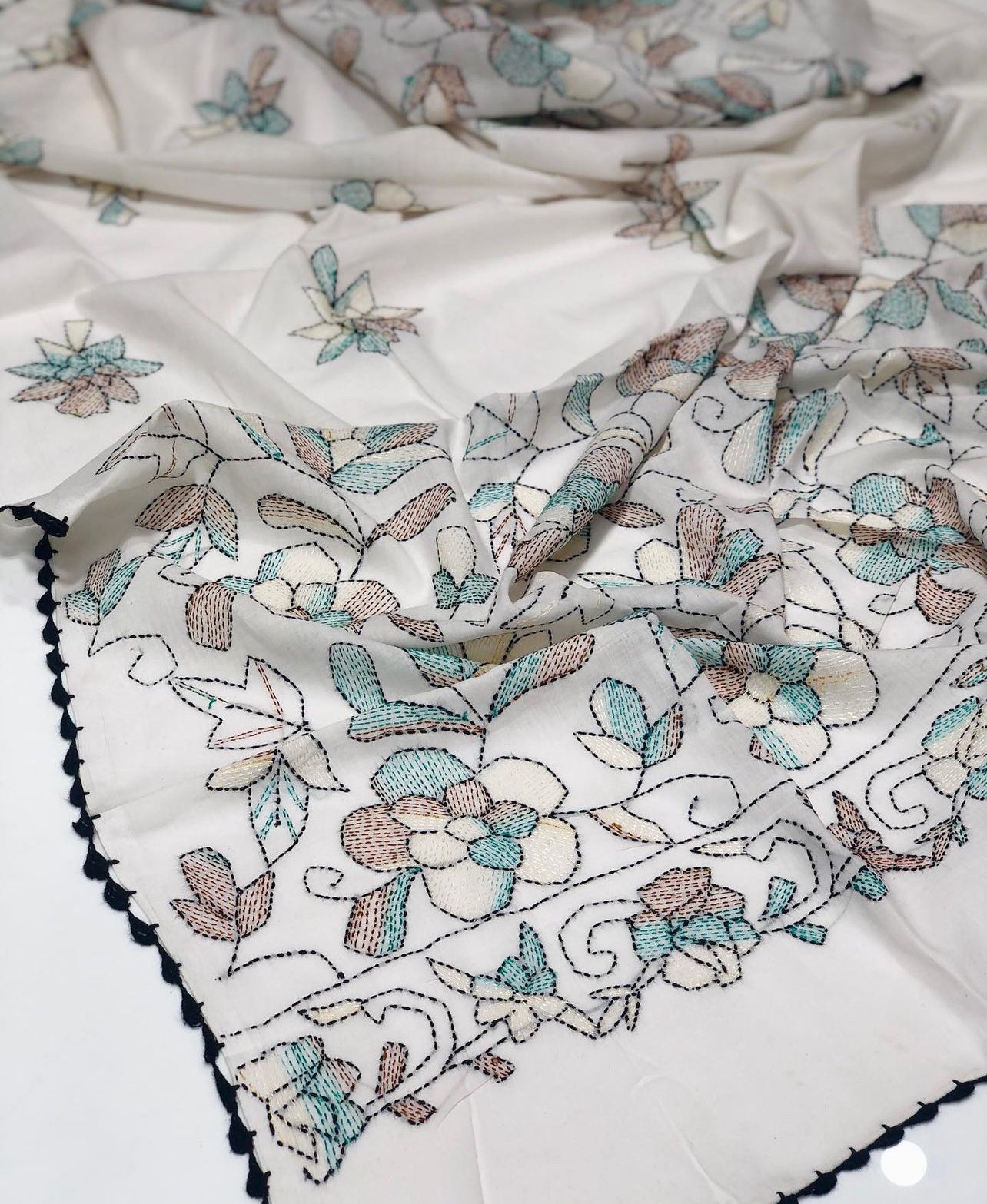 Lawn Duppata Multani Embroidery Kacha Kanta Work Duppata Heavy Pallu Booti Style Embroidered Multi