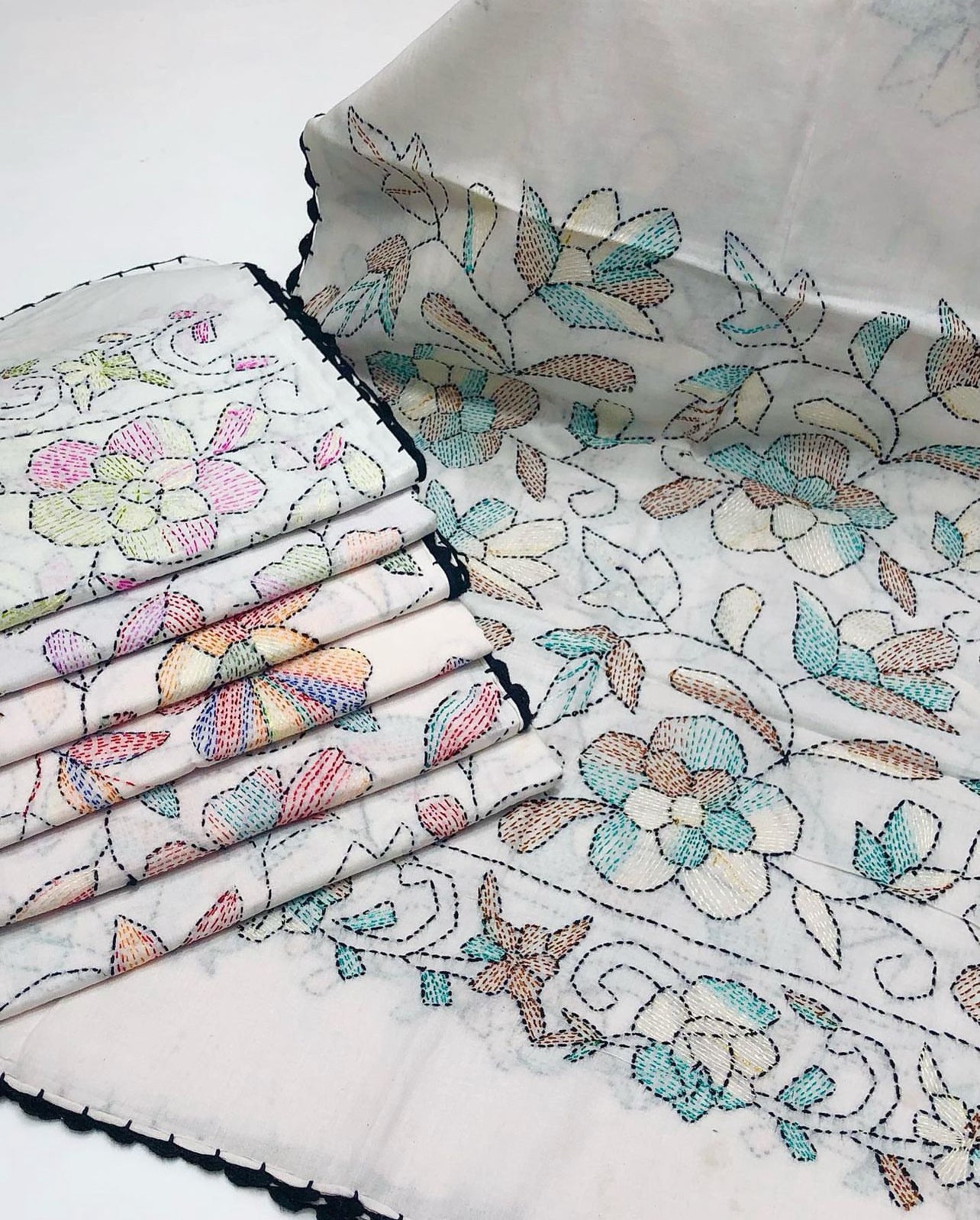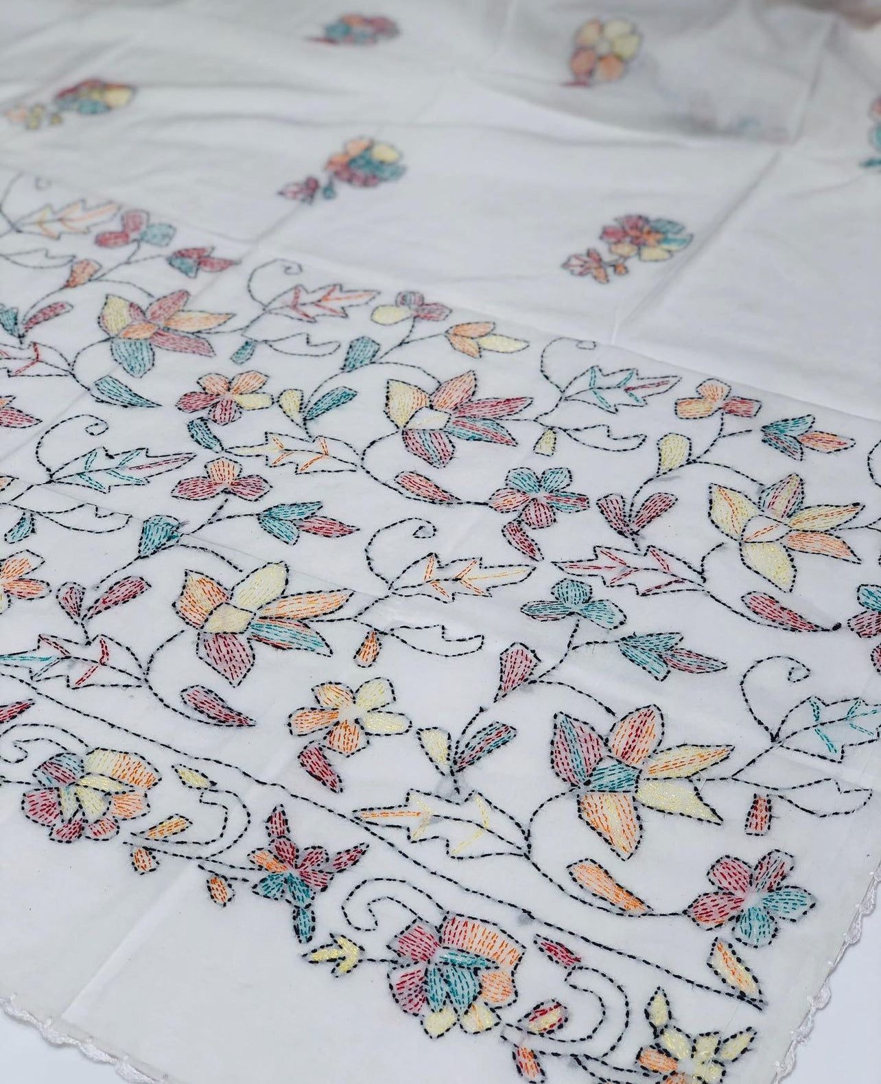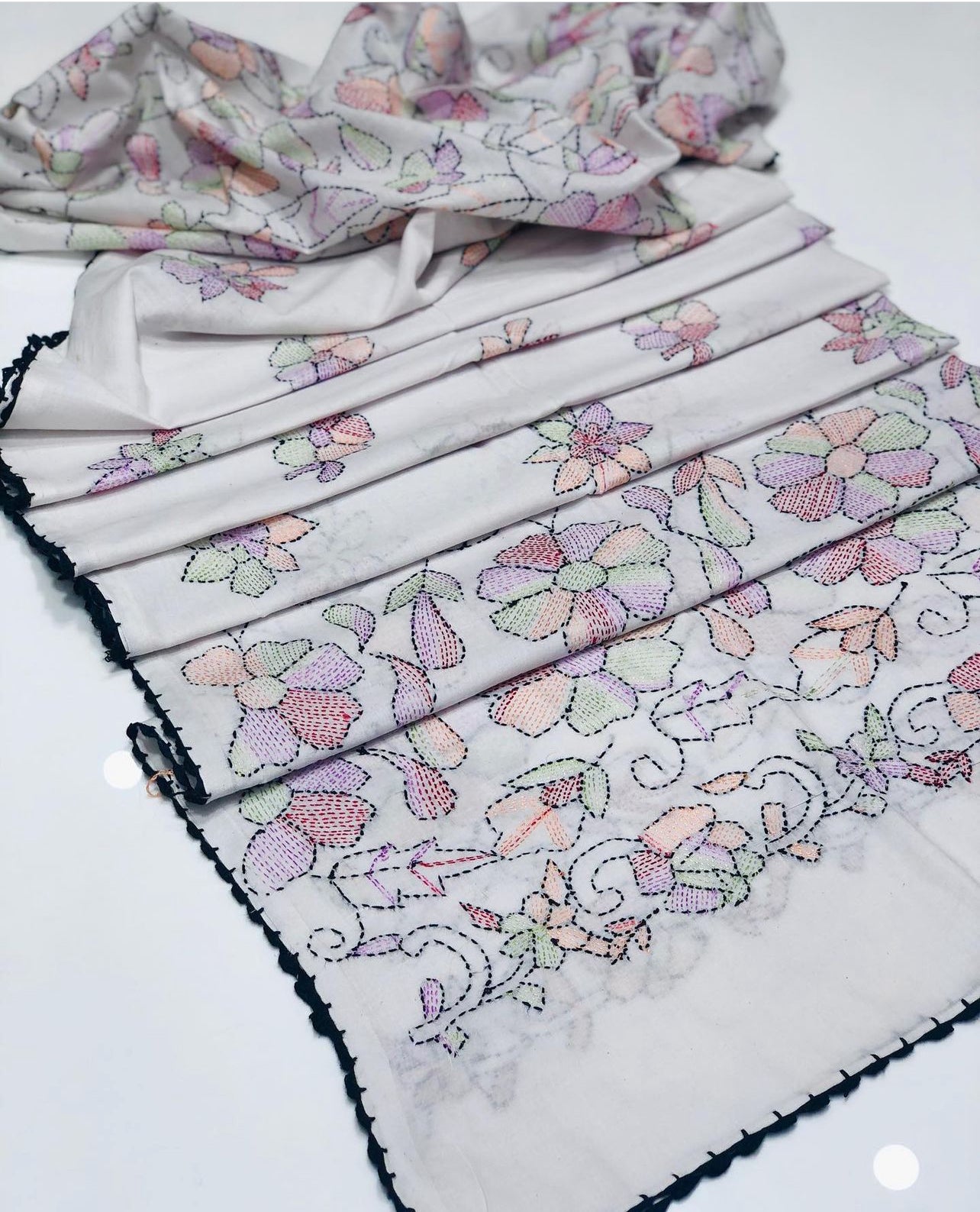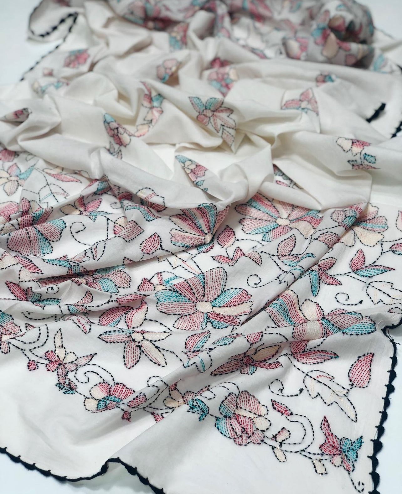 Lawn Duppata Multani Embroidery Kacha Kanta Work Duppata Heavy Pallu Booti Style Embroidered Multi