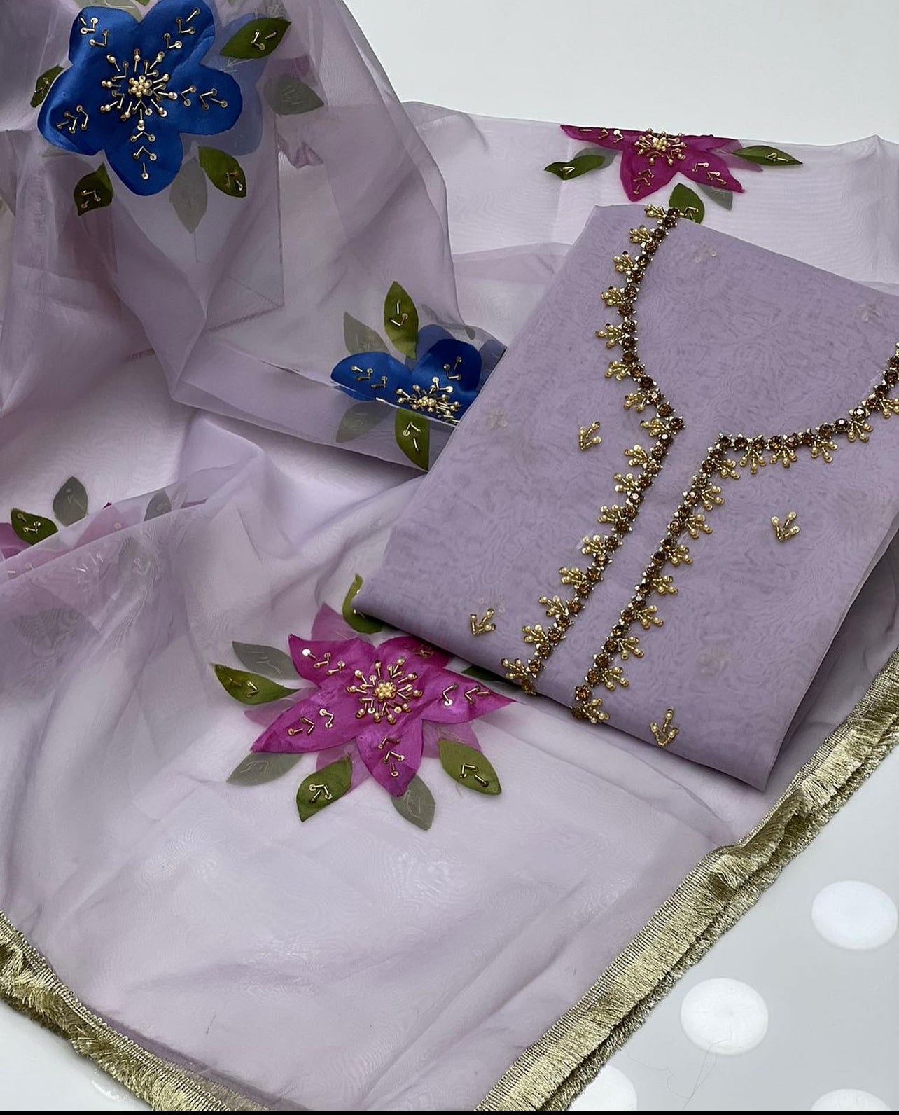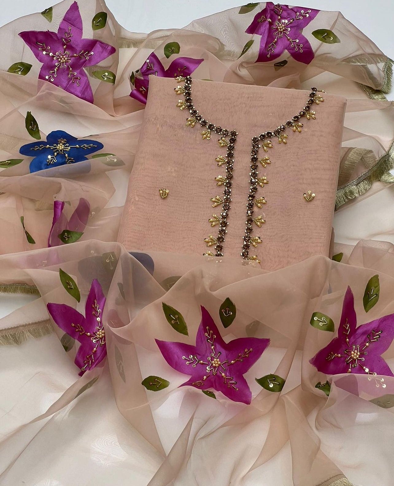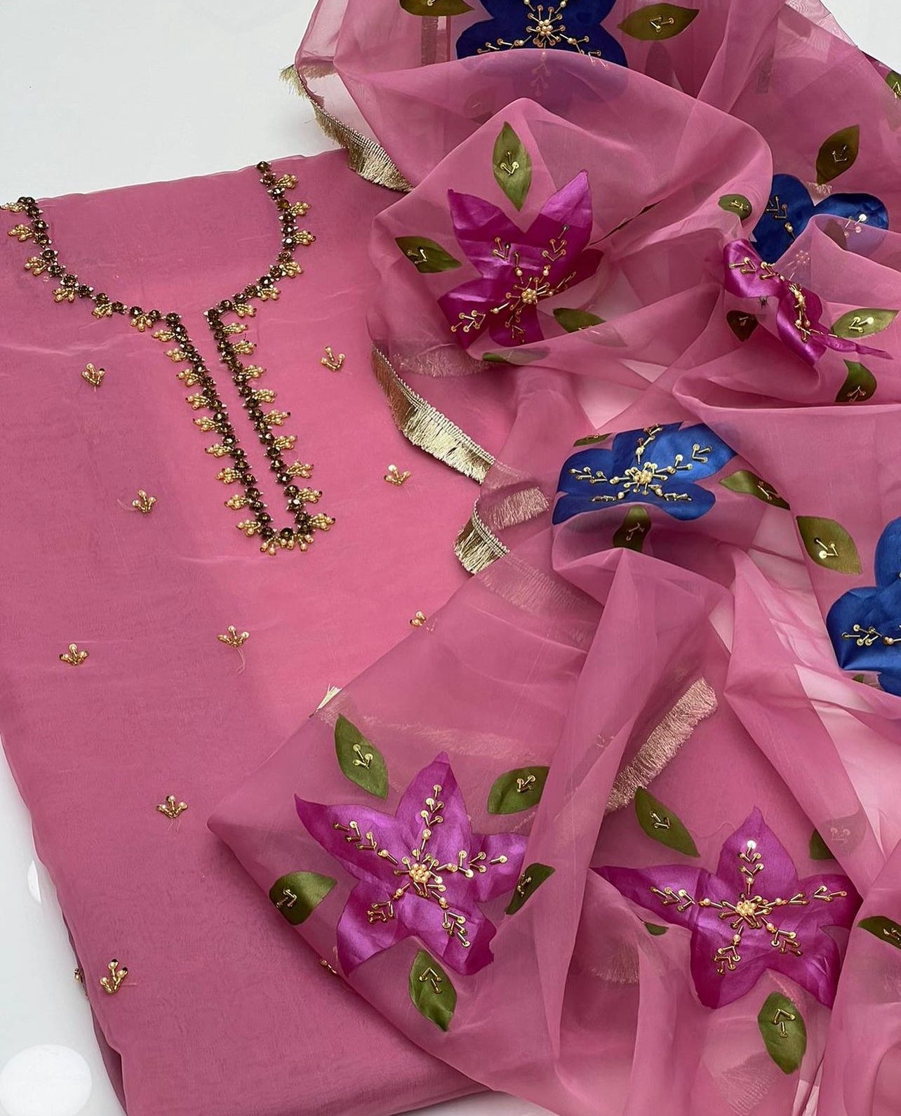 Handwork Zaari Beads Work Oil Paint Organza Duppata 2 Pc Dress 👗