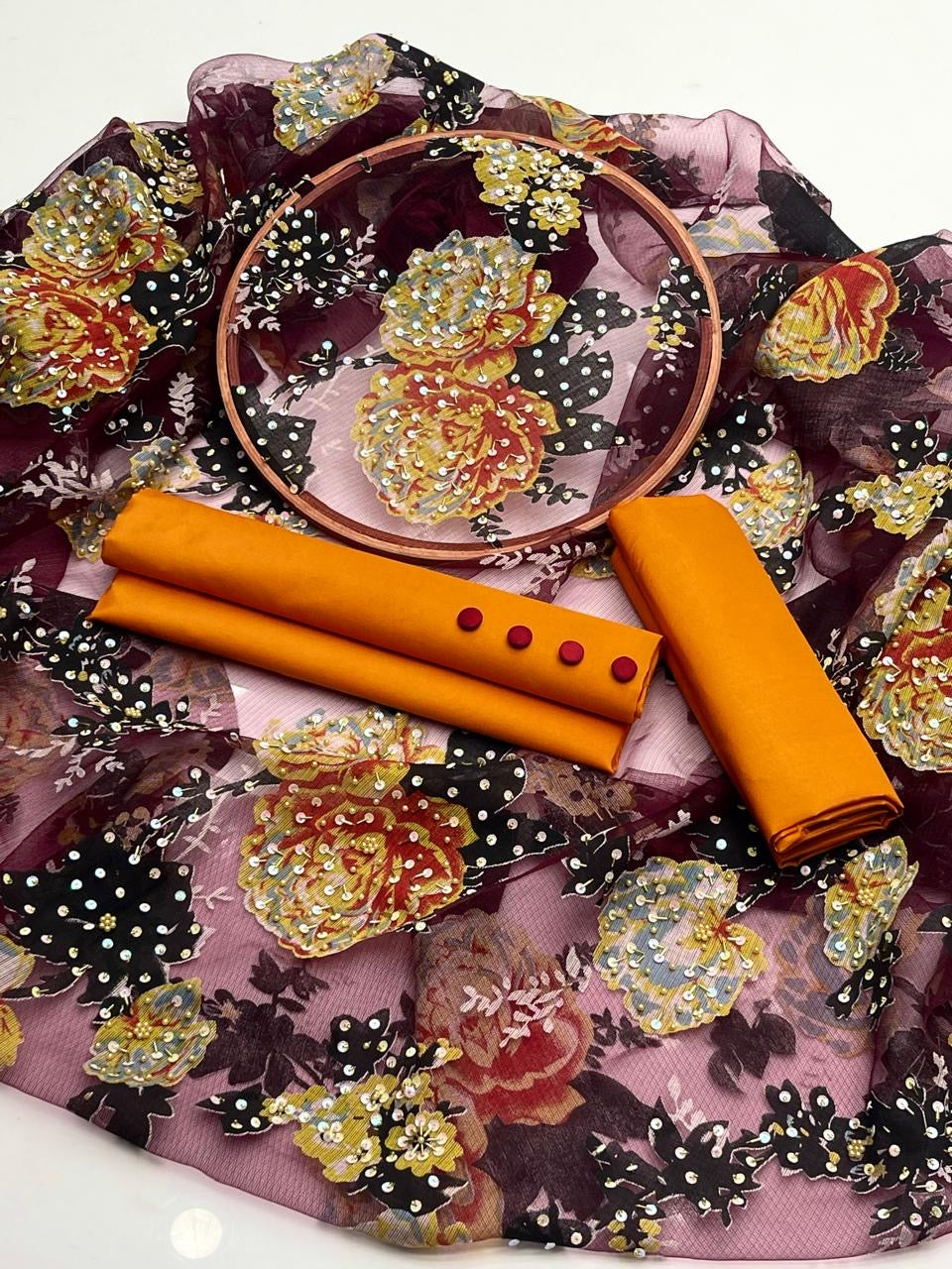 Organza Foam print Dupatta with Cut dana, motive and Sitari EmbroideryÂ