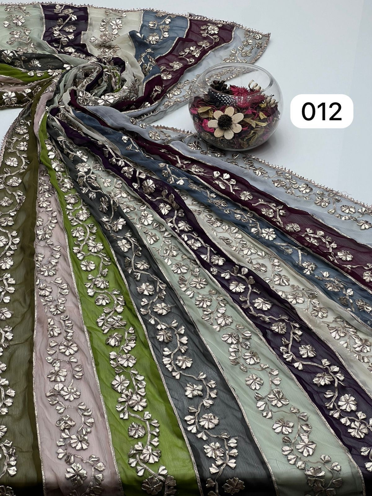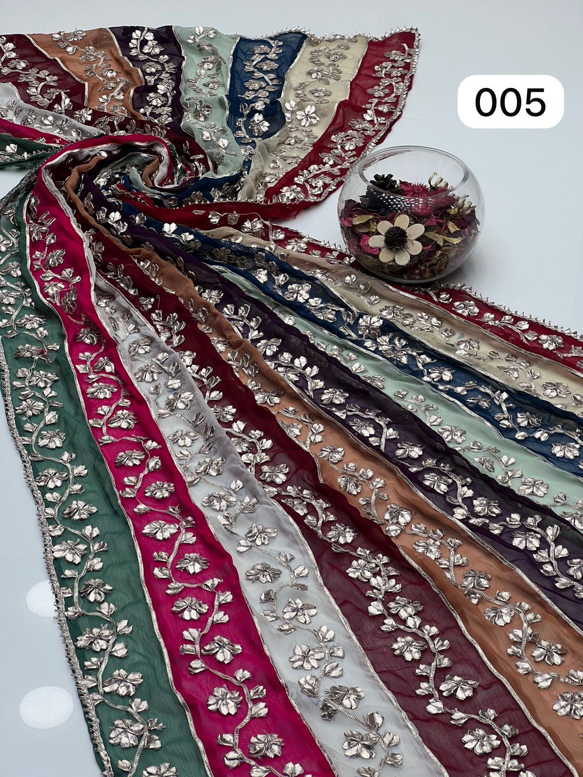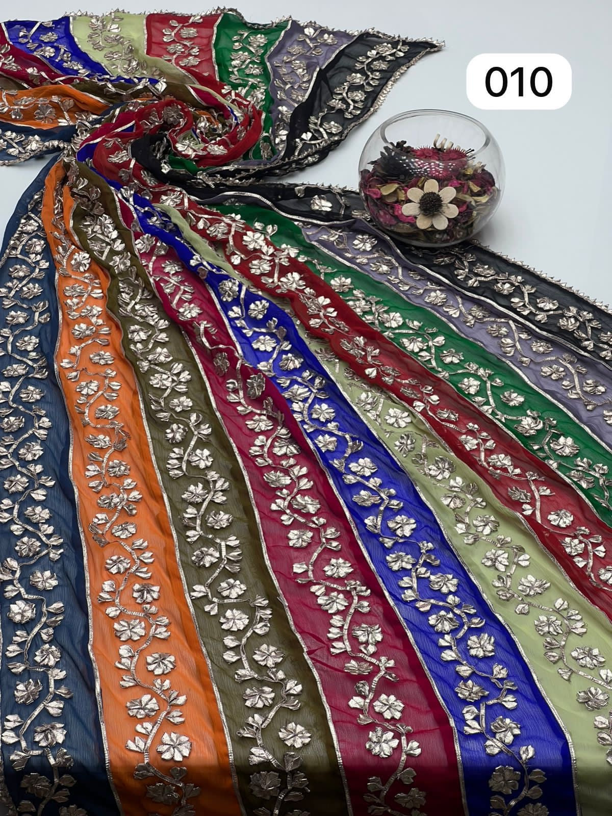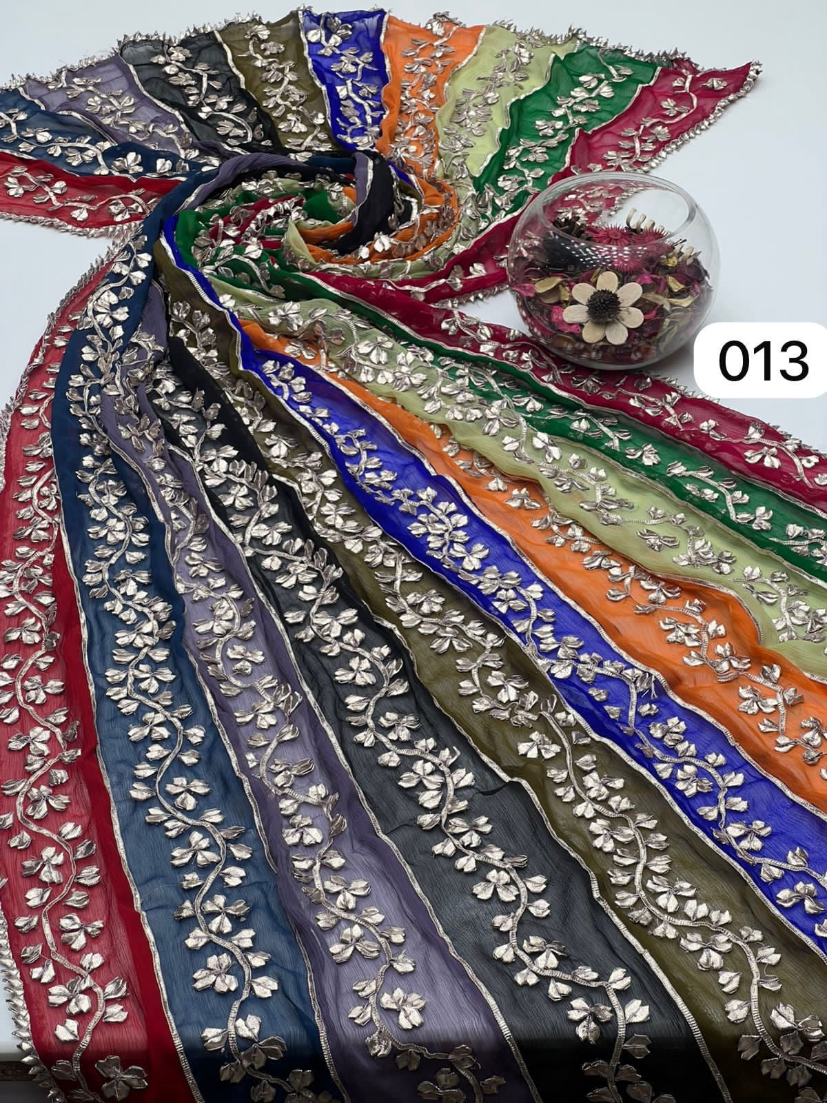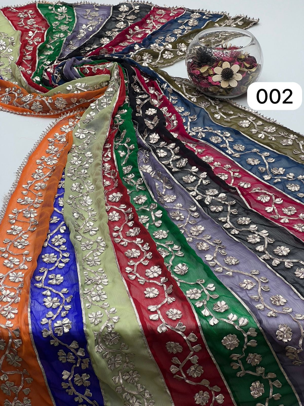 Multi Colour Bamber Chiffon Fabric Handmade Heavy LCD Gotta Lahriya Full Jall Only Dupatta.