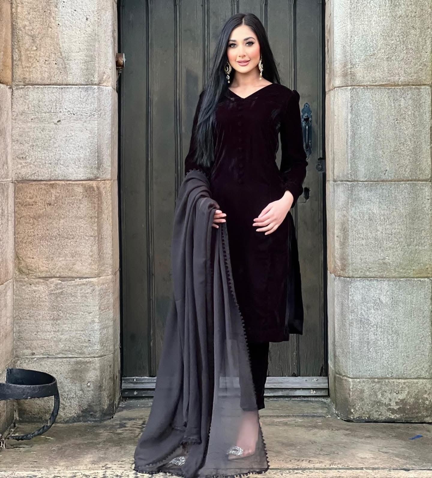 9000 macro Orignal Velvet Shirt & Trouser  along with chiffon Fabric Dupata 3 pc dress